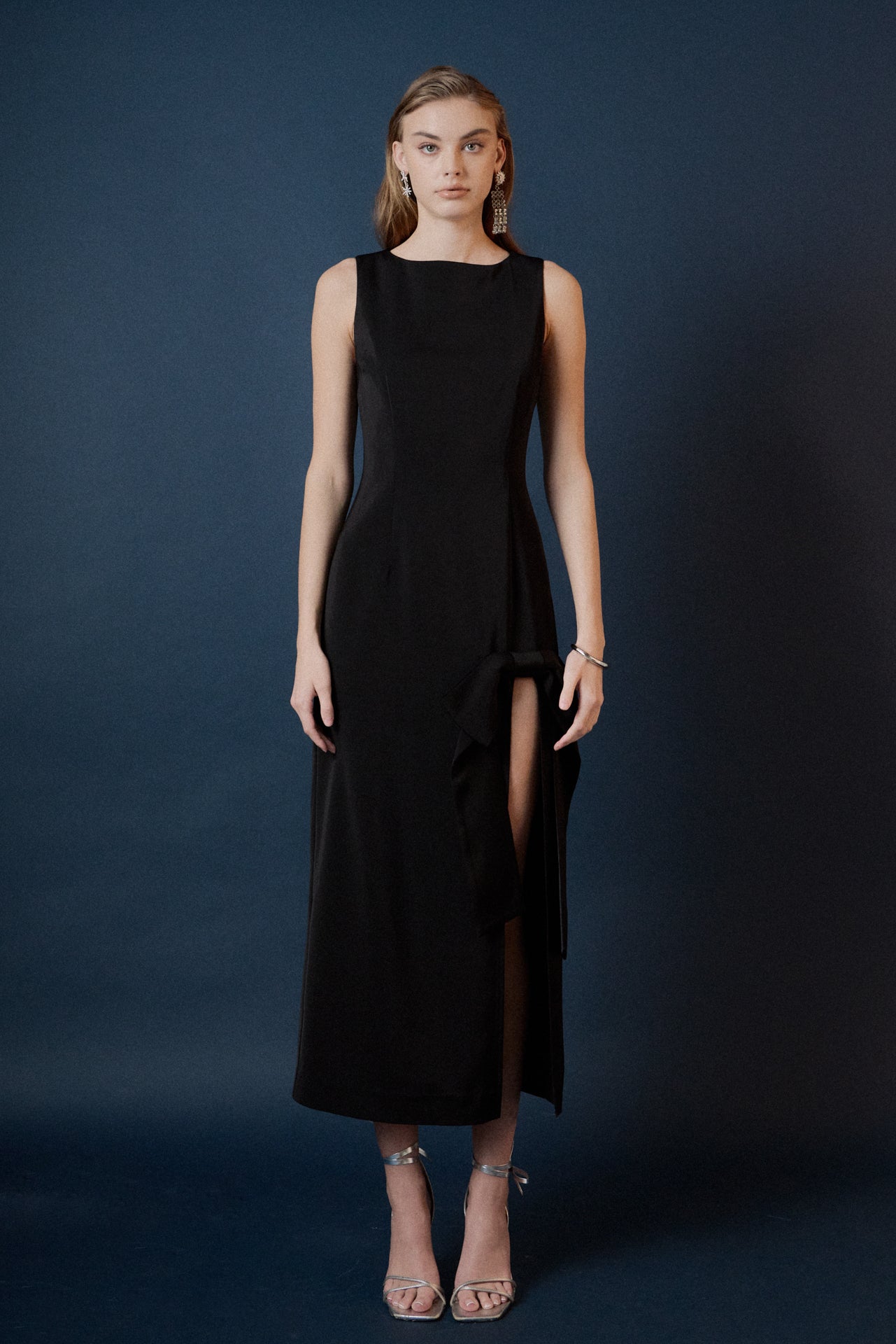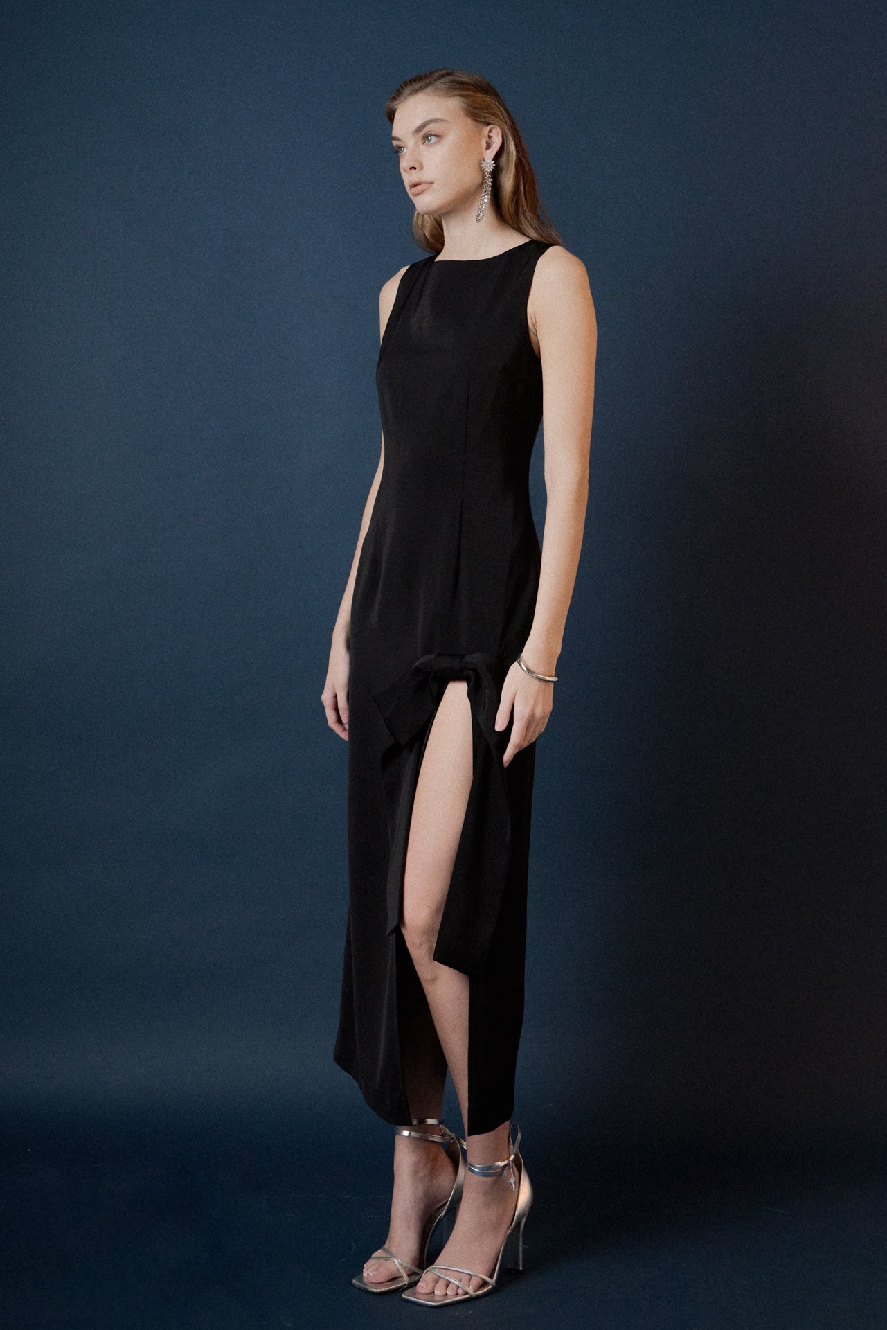 Our Slit Maxi Dress with Bow is designed to move with you, flowing to the floor in a graceful silhouette. A dramatic side slit adds just the right amount of allure, while a delicate bow at the waist highlights your natural shape. Crafted from luxuriously soft fabric, it feels as good as it looks. Perfect for weddings, evening soirees, or a romantic night out, this dress is your go-to for moments that call for unforgettable style.
