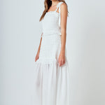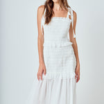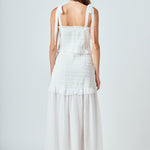 This smocked maxi will make you look and feel like a queen. Who doesn't love a maxi with some pretty ruffle detailing? Not only is this piece perfect for any formal occasion, but the comfortable fit will make you never want to take it off. With its sheer fabric and fitted design, this maxi is sure to turn heads. Add this to your wardrobe and get ready for many compliments.