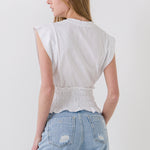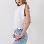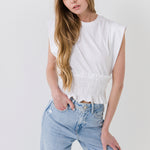 Introducing our Smocked Waist T-Shirt, the perfect addition to your wardrobe! Made with a comfortable knit fabric, this top is perfect for everyday wear. The cap sleeve design adds a touch of femininity to the classic t-shirt style. The smocked waist cinches in at just the right spot, highlighting your curves in all the right ways. As if that wasn't enough, this top also features adorable ruffle details for a playful touch. Upgrade your t-shirt game today and stand out in this must-have piece. Shop now and elevate your style with our Smocked Waist T-Shirt!