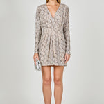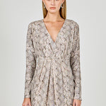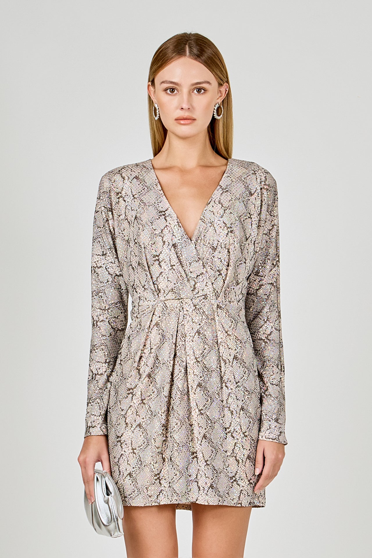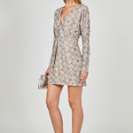 Give your look an exotic twist with this stunning Snake Skin Mini Dress! Crafted from stretchy fabric, it features a chic snakeskin print that catches the light wonderfully. The long sleeves and mini length of the dress create a flattering silhouette that is sure to turn heads. Stand out with this unique design and make a bold fashion statement today!