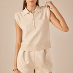 The Soft Sleeveless Knit Polo Top provides comfort and breathability with its lightweight sleeveless design. It features a classic collar and a front pocket detail for added style. Its knit fabric ensures a comfortable fit making it perfect for any outdoor activity.