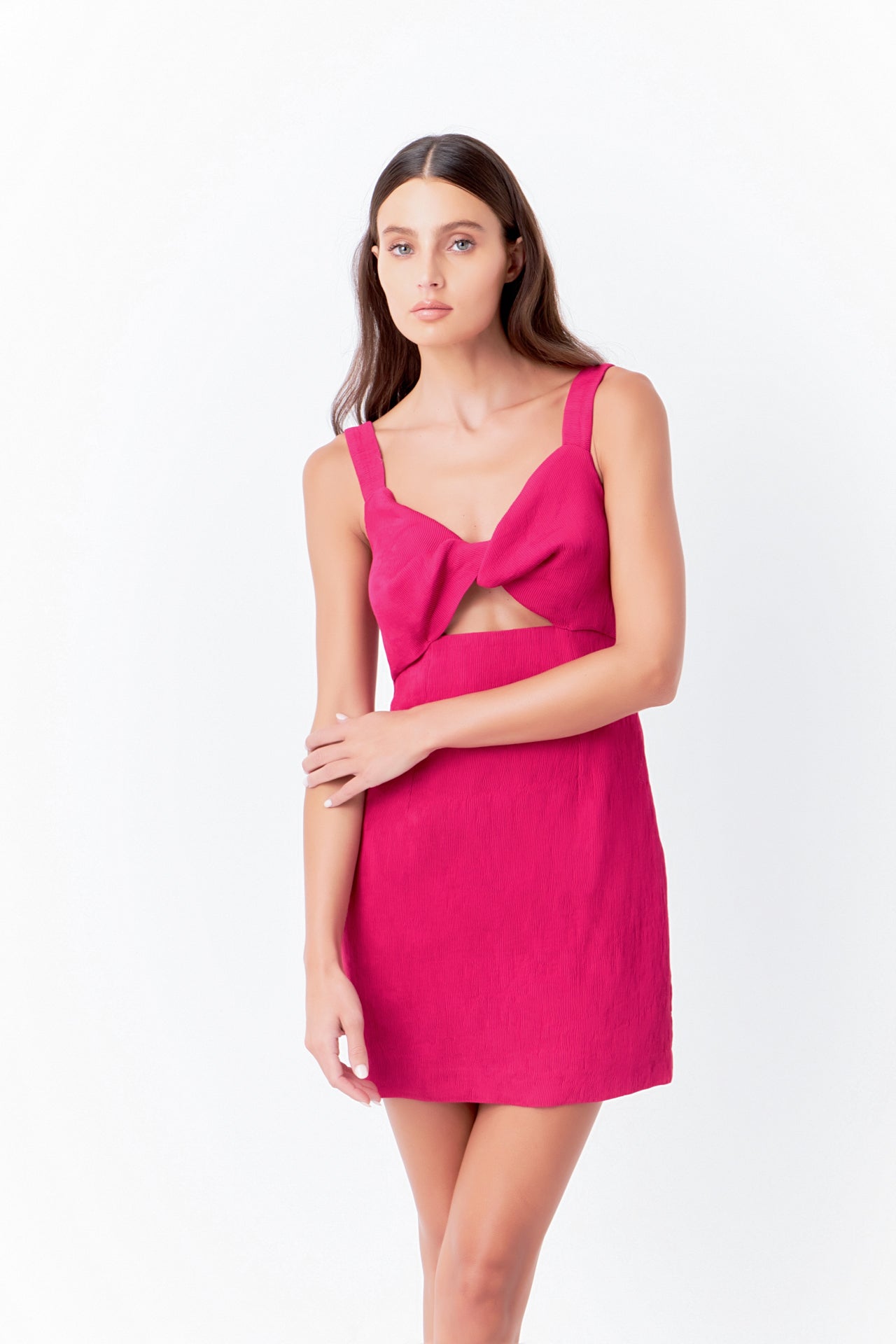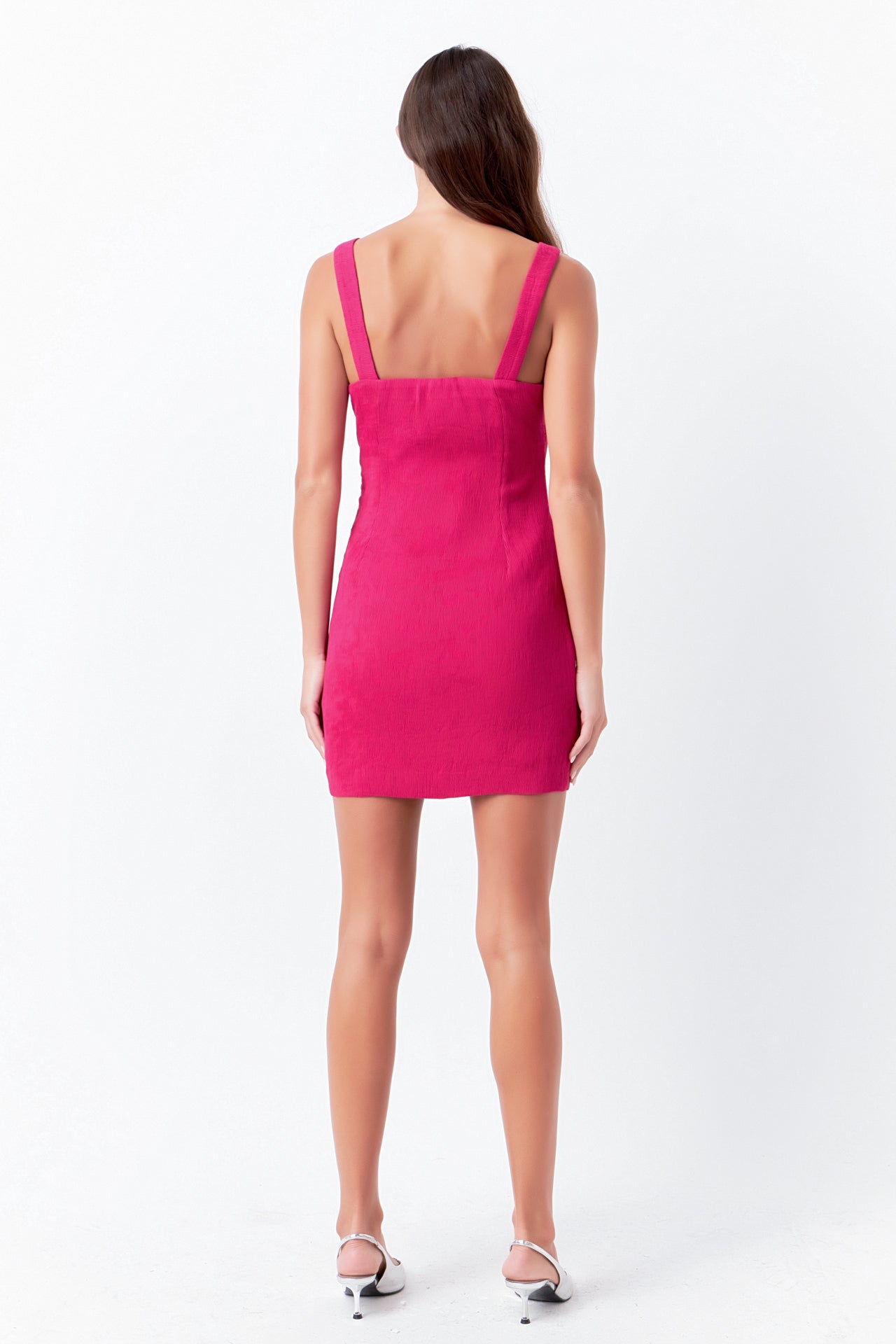 The perfect party dress! Turn heads at your next special event in this Soft Touch Plisse Twist Mini. With front twist detail, back elastic, and side zipper, this glamourous little number has it all. Get dressed up and enjoy a night on the town in style with our Soft Touch Plisse Twist Mini.