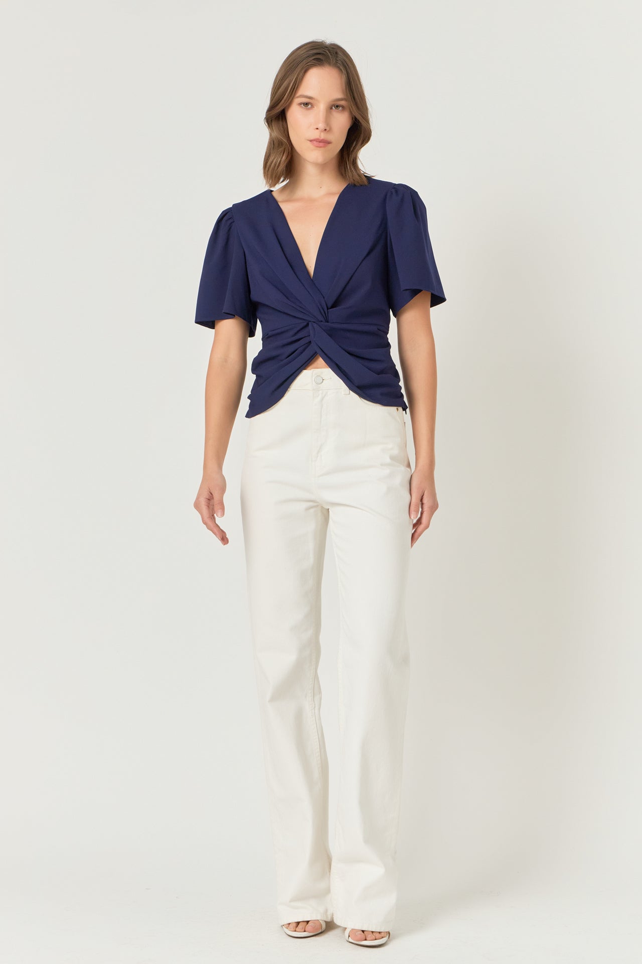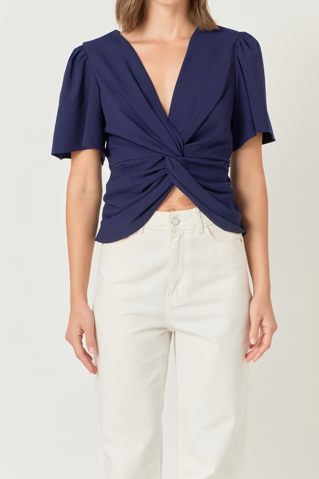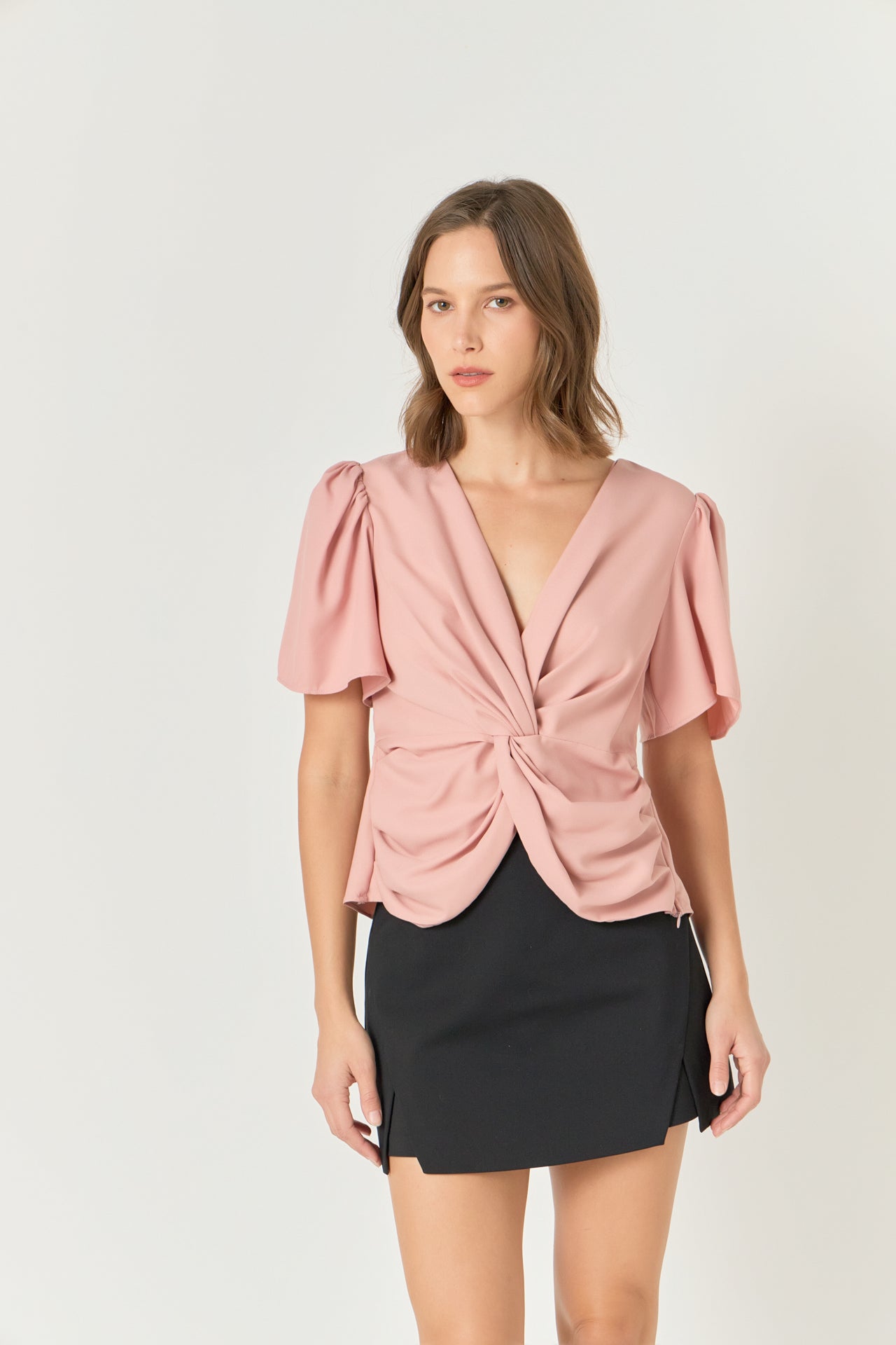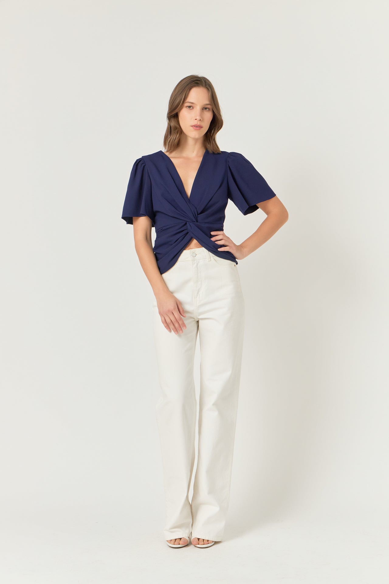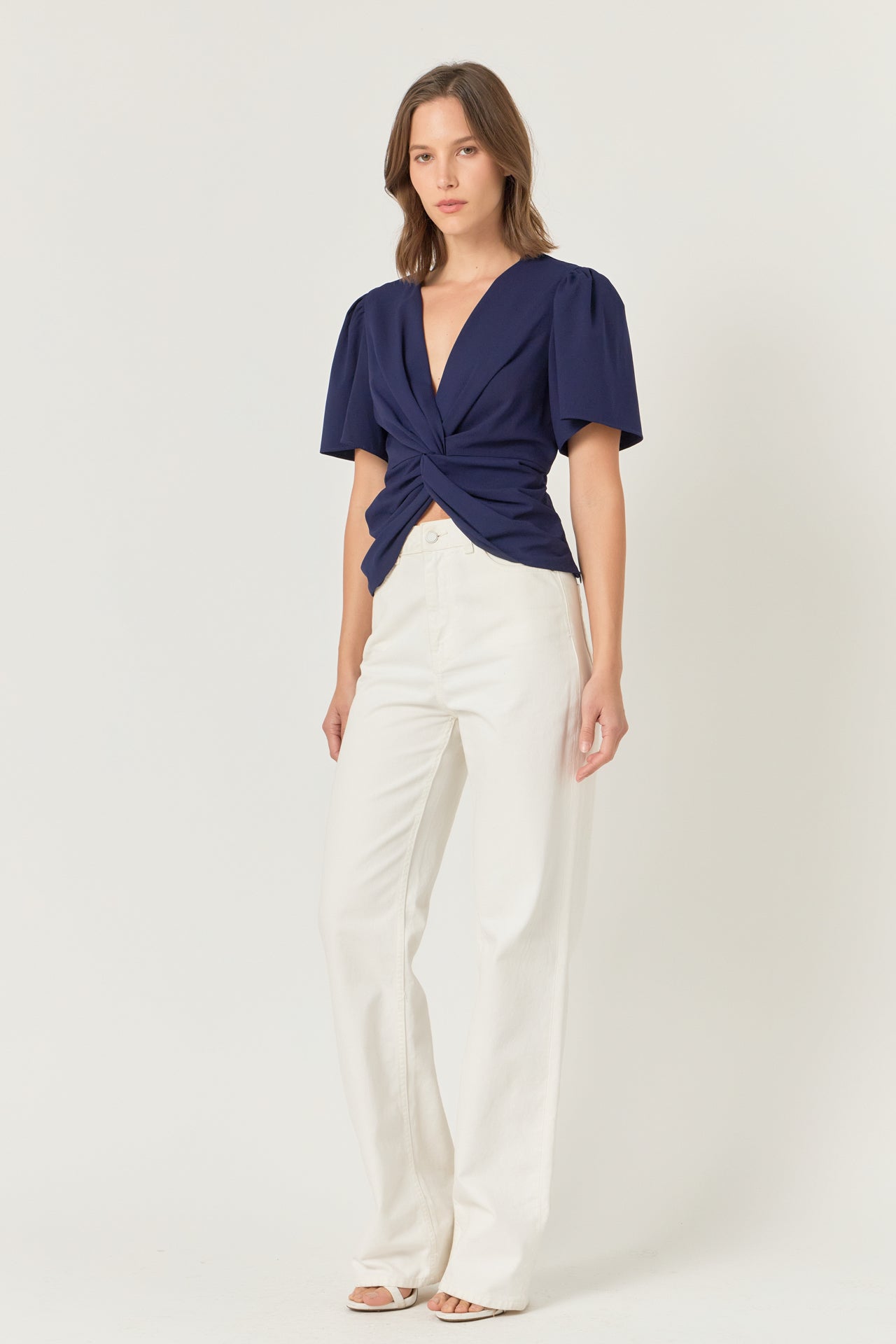 Our gorgeous Solid Knotted Top is the perfect pick-up for every season. This stylish top features a twisted front detail an invisible zipper with a hook & eye short shirring sleeves and a V-neck. Sewn with quality fabrics this top offers the utmost comfort and makes you stand out in the crowd. Buy this stylish top to instantly add style and character to your wardrobe. Get now and enjoy the luxury of looking and feeling great in our exclusive Solid Knotted Top.