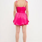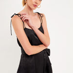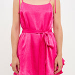 The perfect dress for a romantic night out. With its tiered flounce skirt and spaghetti tie straps, this dress is perfect for dancing the night away. The belted waist provides a figure-flattering silhouette, while the mini length ensures you'll feel confident and beautiful all night long. Add some glamor to your evening look.