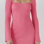 This dress is perfect for a night out. With its flattering square neckline, long sleeves, and mini length, it will make you feel confident and chic. The dress is available in black and fuchsia, so you can choose the color that best suits your style.