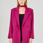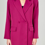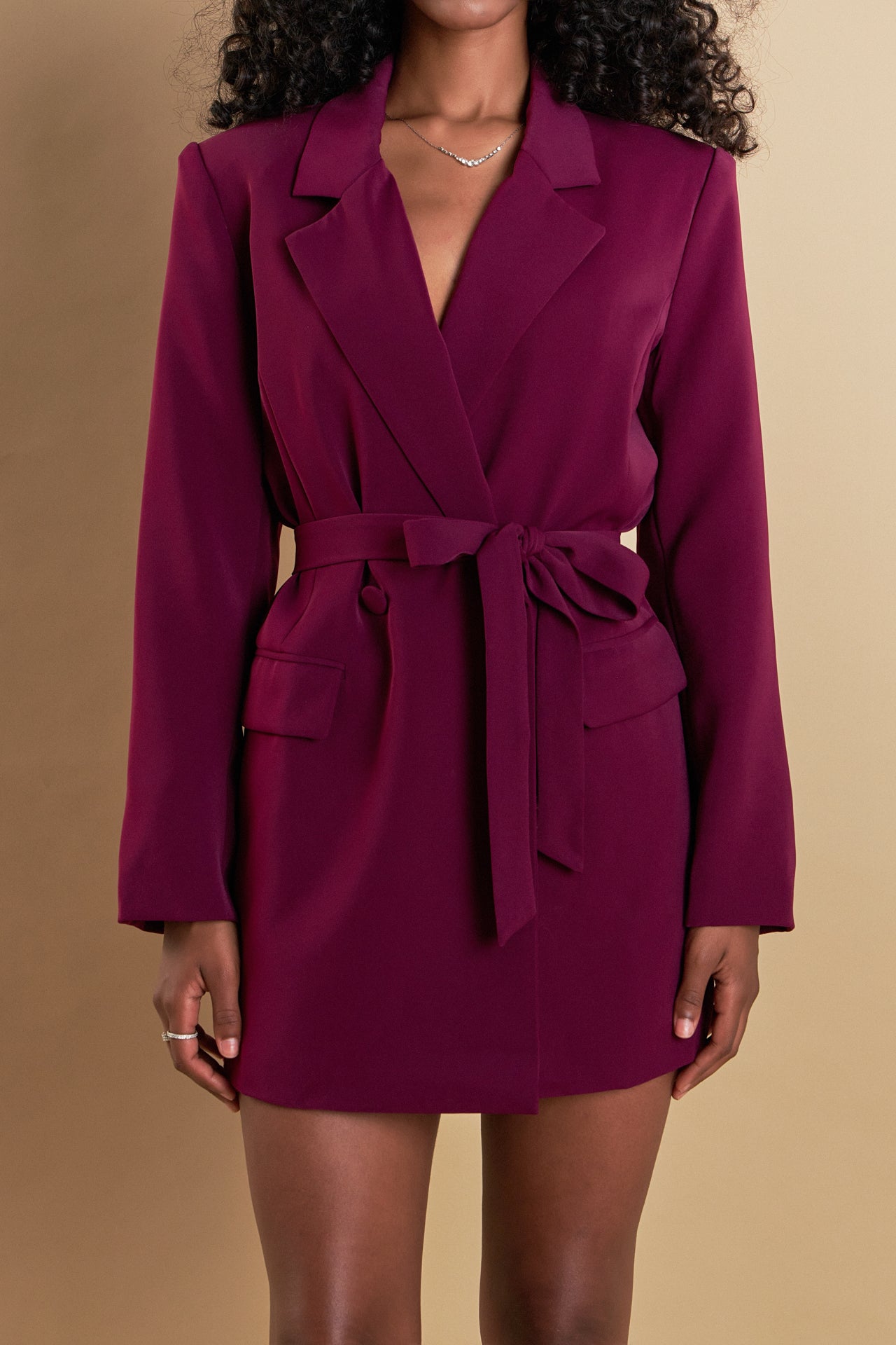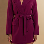 Our stylish Belted Blazer puts a feminine twist on the classic tailored look. The double-breasted silhouette features shoulder pads, notch lapels, and flap pockets. Wear as a traditional blazer or accentuate your figure with the matching belt. The best part? You can wear this piece as a fashionable blazer with your favorite trousers or as a mini dress.