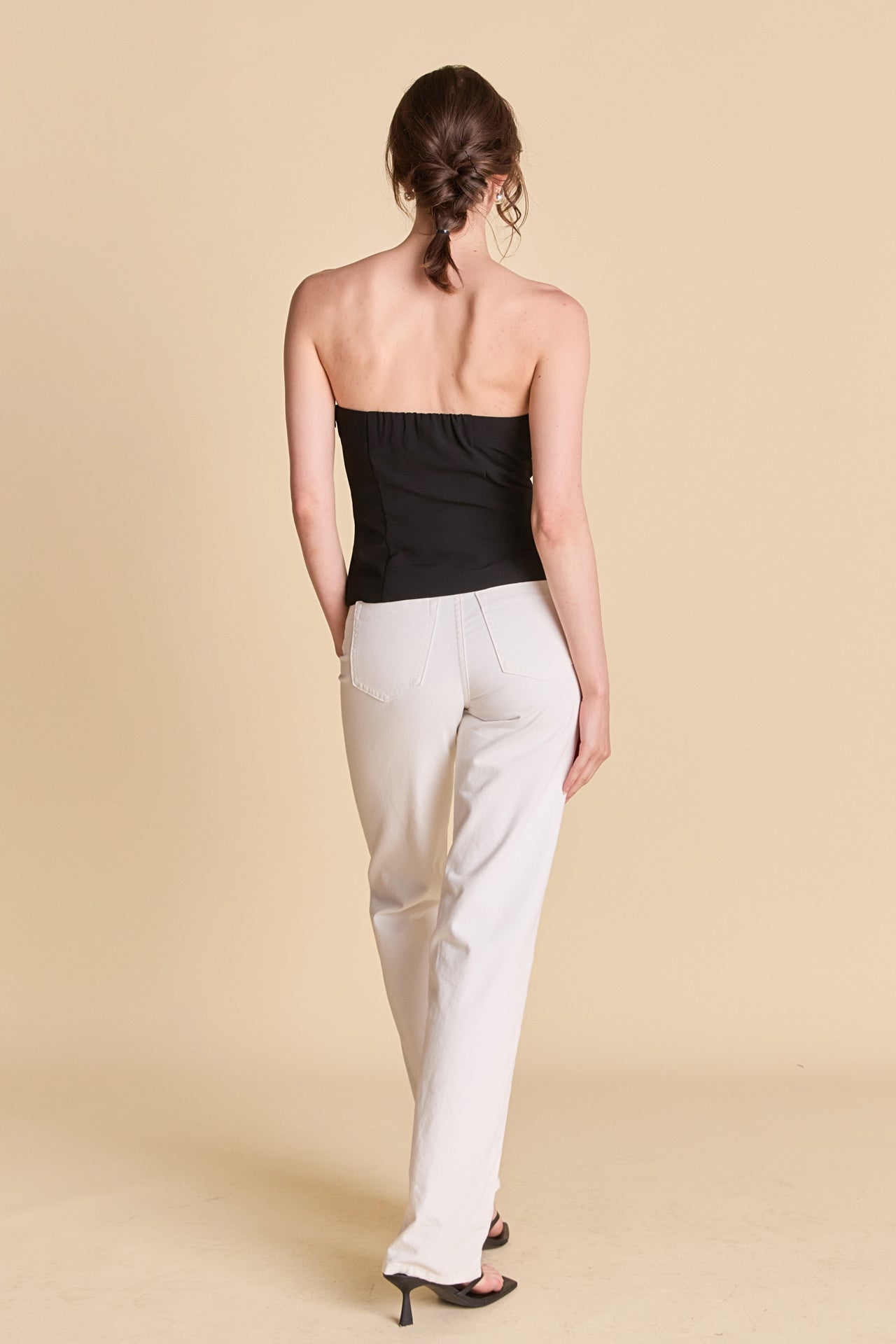 Introducing our must-have Strapless Bustier Top with Bow, the perfect addition to your summer wardrobe. This top features a flattering strapless design, front bow details for a touch of femininity, and a convenient front snap button closure. Fully lined for ultimate comfort and support, this top is perfect for any occasion. Made from high-quality materials, this top is not only stylish but also durable. Elevate your look this season with our Strapless Bustier Top and make a statement. Shop now and be the envy of all your friends!