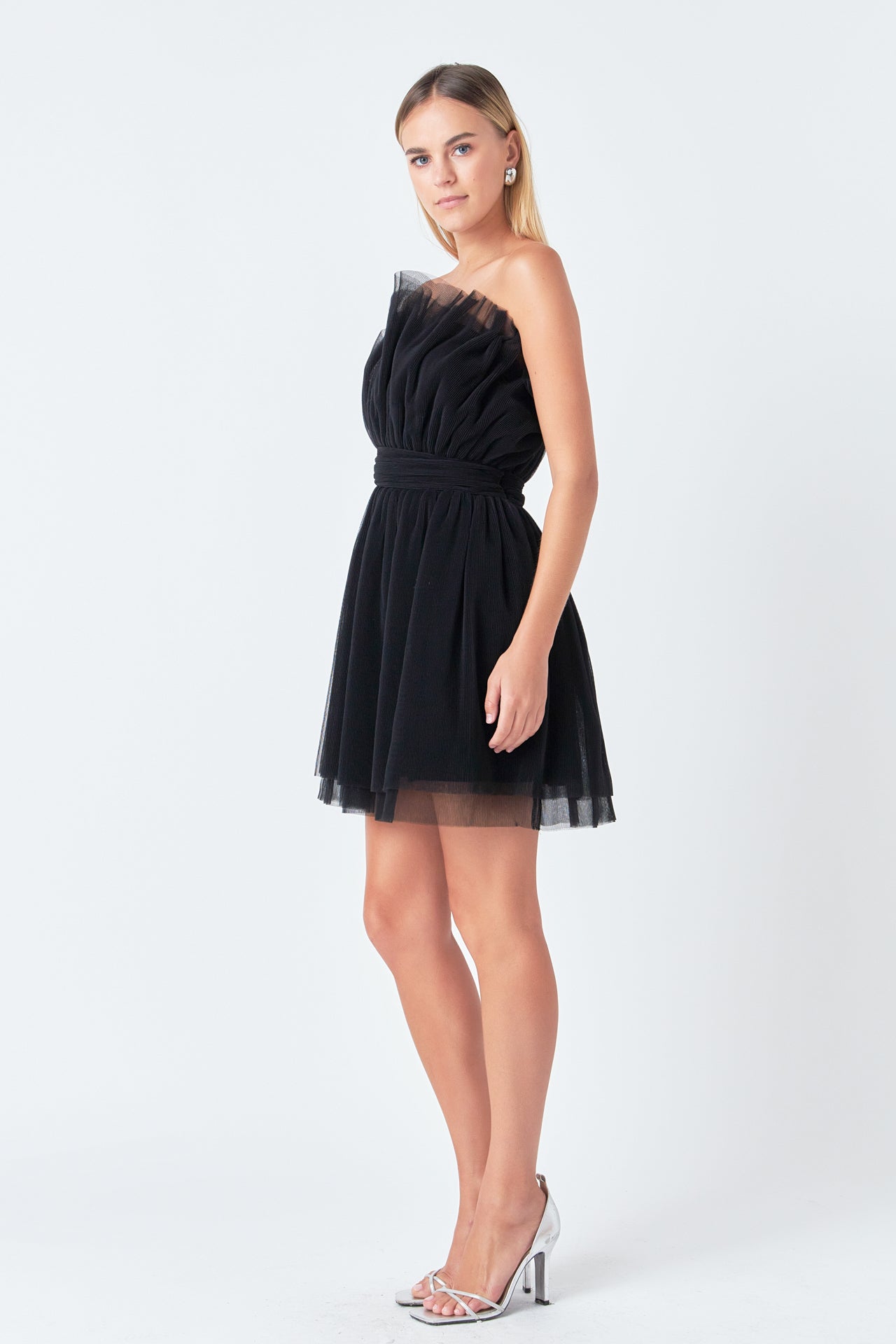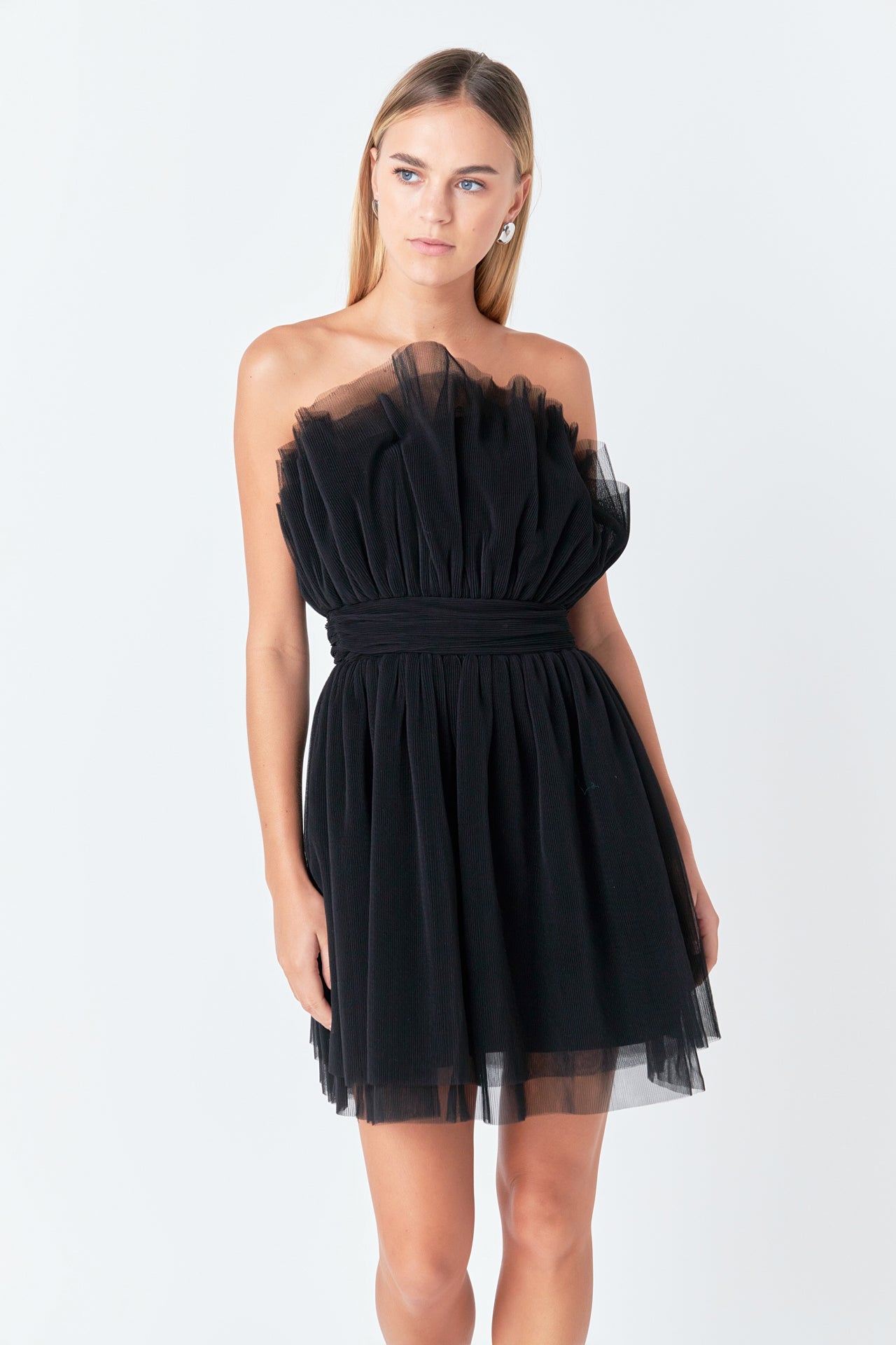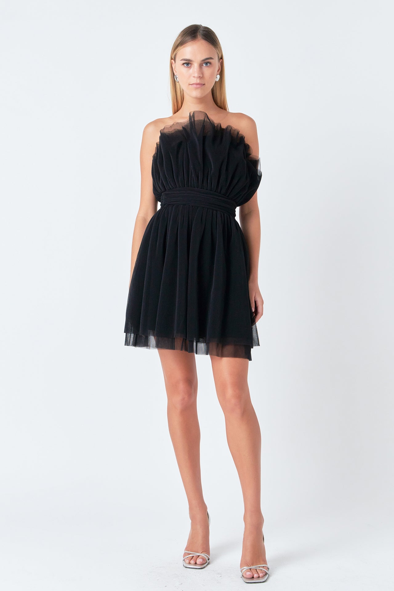 Our Strapless Mini Tulle Dress is sure to make a statement. The soft and lightweight fabric along with the fitted lining accentuates the delicate details of the dress. The combination of the strapless top and mini length cuts is sure to make heads turn. The Strapless Mini Tulle Dress is the perfect choice for any special event. Shop now and flaunt your fashion sense with this fashion forward dress.