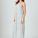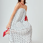 Samantha Strapless Pleated Polka Dot Maxi Dress