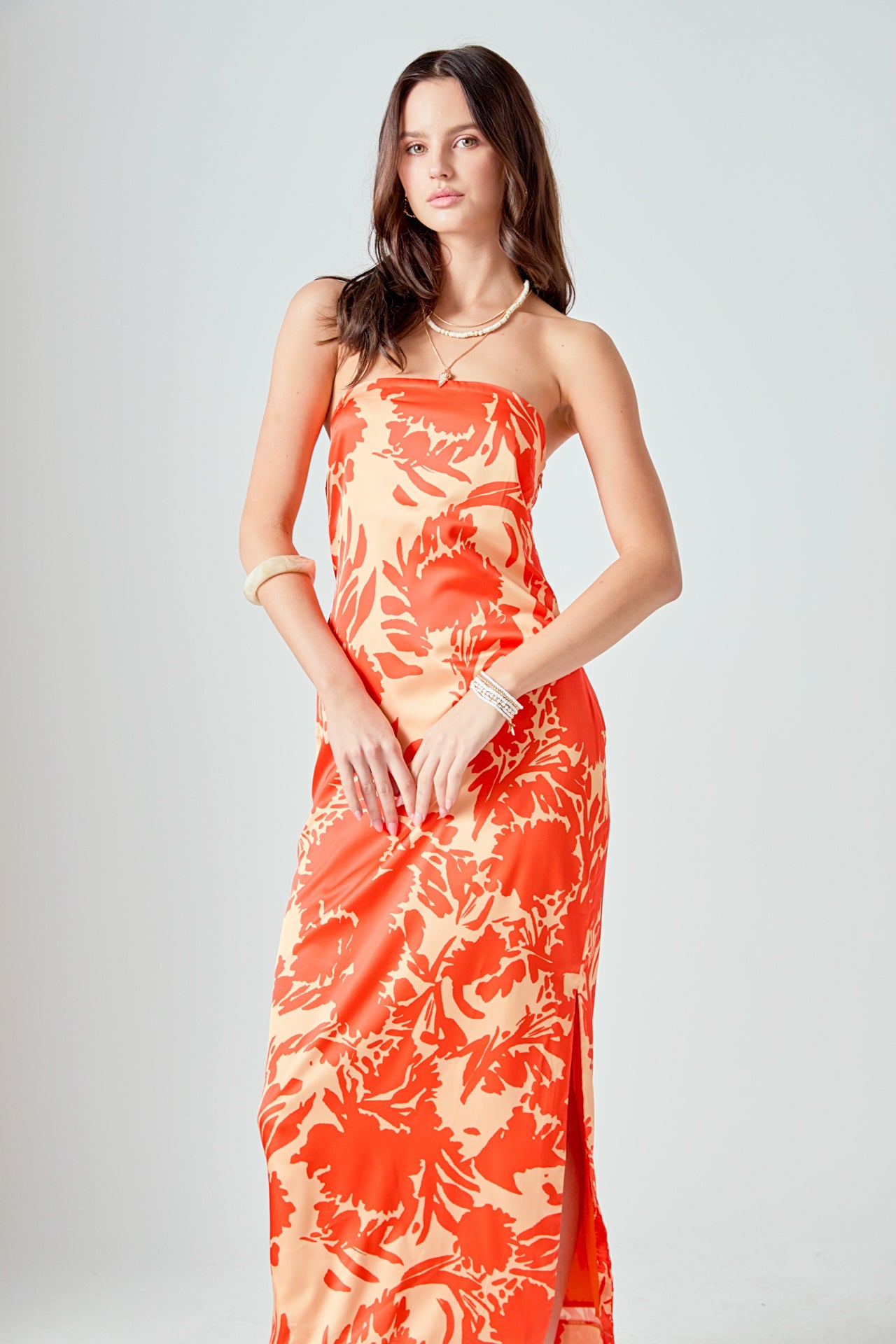 Strapless Print Maxi Dress