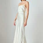Elevate your style with our Strapless Satin Maxi Dress. This elegant dress features a flattering strapless design and luxurious satin fabric that drapes beautifully down to a maxi length. The side zipper ensures a perfect fit and easy wear. Ideal for formal events, weddings, and special occasions, this dress will make you stand out from the crowd. With its timeless appeal and figure-flattering silhouette, you'll look and feel like a true fashionista. Plus, with its versatility, you can easily dress it up or down for any occasion. Shop now for this must-have dress!