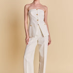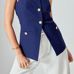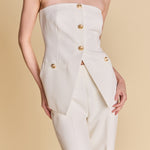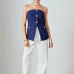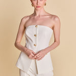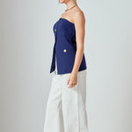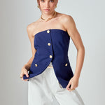 Introducing our must-have Strapless Suit Long Top, a versatile addition to your wardrobe. The trendy strapless design exudes confidence and grace, while the long length adds an elegant touch. The front buttons add a touch of sophistication while the back zipper ensures a comfortable fit. Perfect for any occasion, wear it with jeans for a casual look or pair it with a skirt for a formal event. Don't miss out on this unique and stylish top. Upgrade your style game with our Strapless Suit Long Top today!