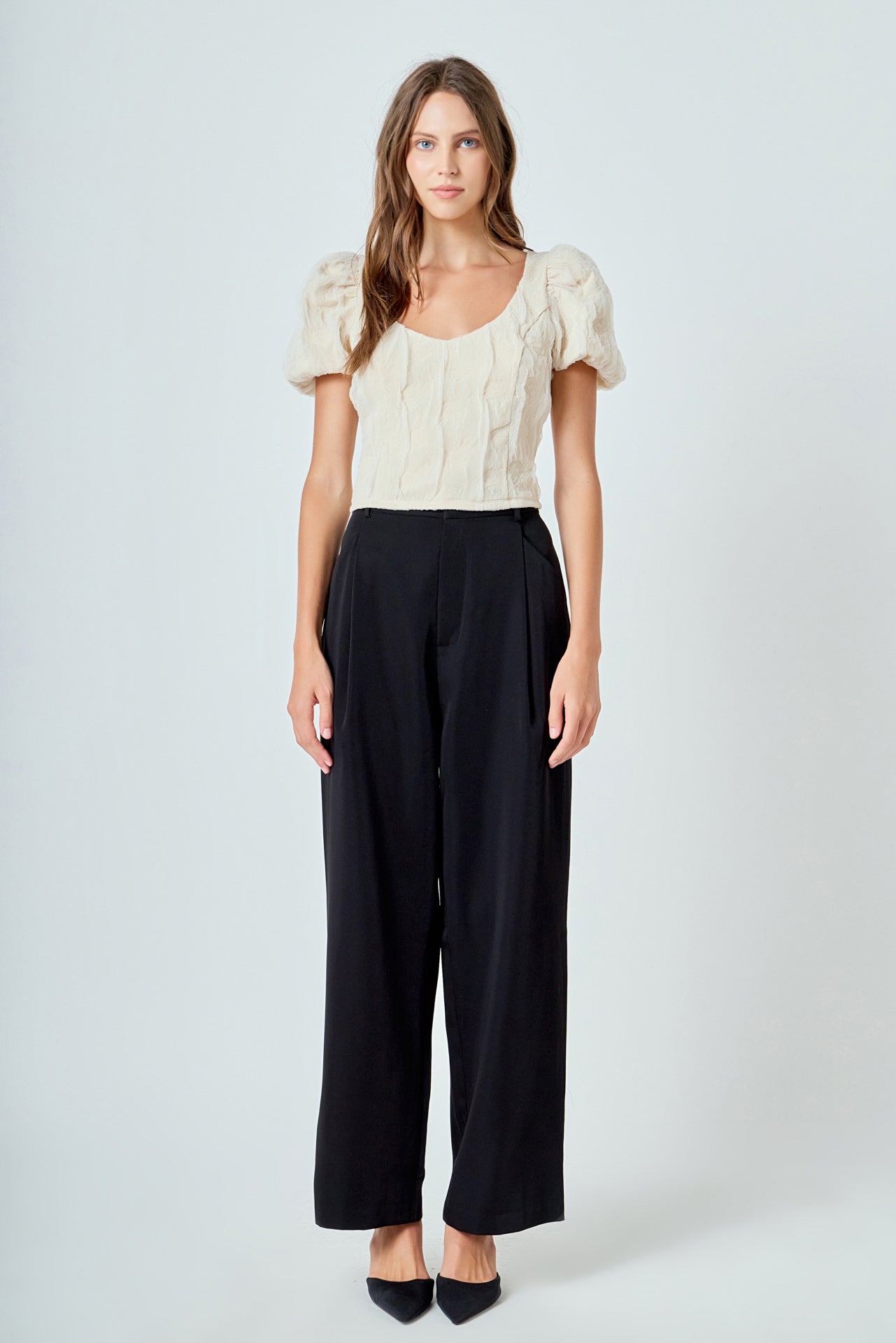 Add a touch of texture to your everyday look. With stretch fabric and pretty details, this top is perfect for any day. The puff sleeves and shirring on the shoulders give it a touch of femininity, while the sweetheart neckline adds a touch of glamor. Dress it up or down-either way, you'll love how this top makes you feel.