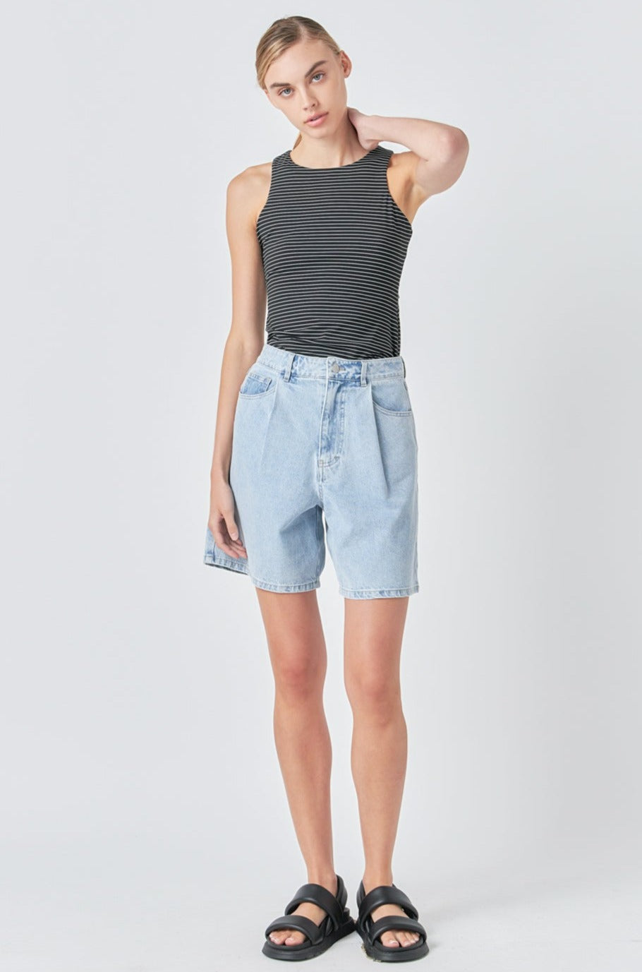 Introducing our must-have Striped Bodysuit! This tank sleeved top will instantly elevate your wardrobe with its fashionable stripes. Designed for comfort and style it is a versatile piece that can be dressed up or down for any occasion. Made with high-quality material it is easy to care for with a simple hand wash. Say goodbye to boring outfits and hello to effortless chic with our Striped Bodysuit. Don't wait add this striped beauty to your closet now! Shop now and stand out in style with our Striped Bodysuit.