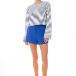 This Striped Cropped Top features a round neckline, wide long sleeves, and a cropped length for a stylish and comfortable look. The unique striped design will provide subtle sophistication while still adding an edge to any outfit. The lightweight material makes it perfect for any season, so you can stay cool and look great all year long. Get yours today and elevate your wardrobe with this timeless piece.