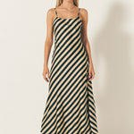 Introducing our stunning Striped Maxi Slip Dress the ultimate must-have for any fashion-forward woman. This maxi dress features a beautiful diagonal stripe pattern and is designed with a side zipper for easy on and off. The adjustable spaghetti straps allow for a personalized fit while the maxi length adds an elegant touch. Perfect for any occasion this dress is a versatile addition to your wardrobe. Don't miss out on this must-have piece that combines style and comfort effortlessly. Shop now and elevate your wardrobe with our Striped Maxi Slip Dress!
