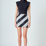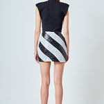 Our amazing Striped Sequins Skirt is the perfect way to bring sparkle to any wardrobe. This mini length skirt features a luxurious lining for luxurious comfort. It reflects light to bring out the wonderful vibrancy of the sequins. This skirt is sure to draw attention and take your look to the next level. Add it to your wardrobe today!