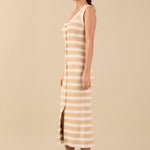 Our Striped Strapless Midi Dress is a must-have for your wardrobe! Made from high-quality knitdown fabric this midi dress will flatter your figure while keeping you comfortable all day. The strapless design adds a touch of elegance perfect for any occasion. The midi length provides just the right amount of coverage making it a versatile choice for any season. With its trendy striped pattern this dress will surely turn heads. Don't miss out on this fashionable and timeless piece! Order now and elevate your style game.