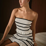 Introducing our Striped Tube Knit Mini Dress, a must-have addition to your dress collection. Made with a soft and stretchy material, this dress hugs your body in all the right places. The vibrant horizontal stripes add a fun and playful touch while accentuating your curves. Versatile enough for day or night, this dress is perfect for any occasion. Dress it up with heels and statement jewelry, or keep it casual with sneakers and a denim jacket. This dress is a fashion-forward statement piece. Don't miss out, get yours now!