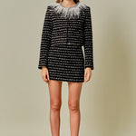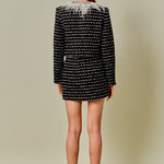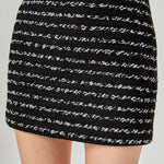 Upgrade your skirt game with our trendy striped tweed skirt. Made from high-quality tweed fabric, this H line skirt offers a sophisticated and chic look. The side invisible zipper ensures a seamless fit and the mini length adds a flirty touch. Perfect for both work and play, this versatile skirt is a must-have in your wardrobe. Pair it with a solid-colored top and heels for a polished look or add a graphic tee and sneakers for a more casual vibe. Elevate your style with our striped tweed skirt today!