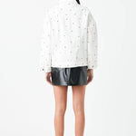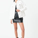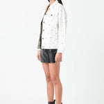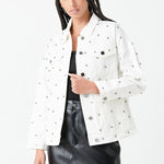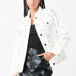 Add some edge to your everyday look with our studded denim jacket. This jacket is perfect for giving your outfit a touch of tough glamor. With its long sleeves and front button closure, it's a must-have for those chilly days and nights. Style this jacket with a simple dress or pair it with jeans and a t-shirt for a cool and casual look.