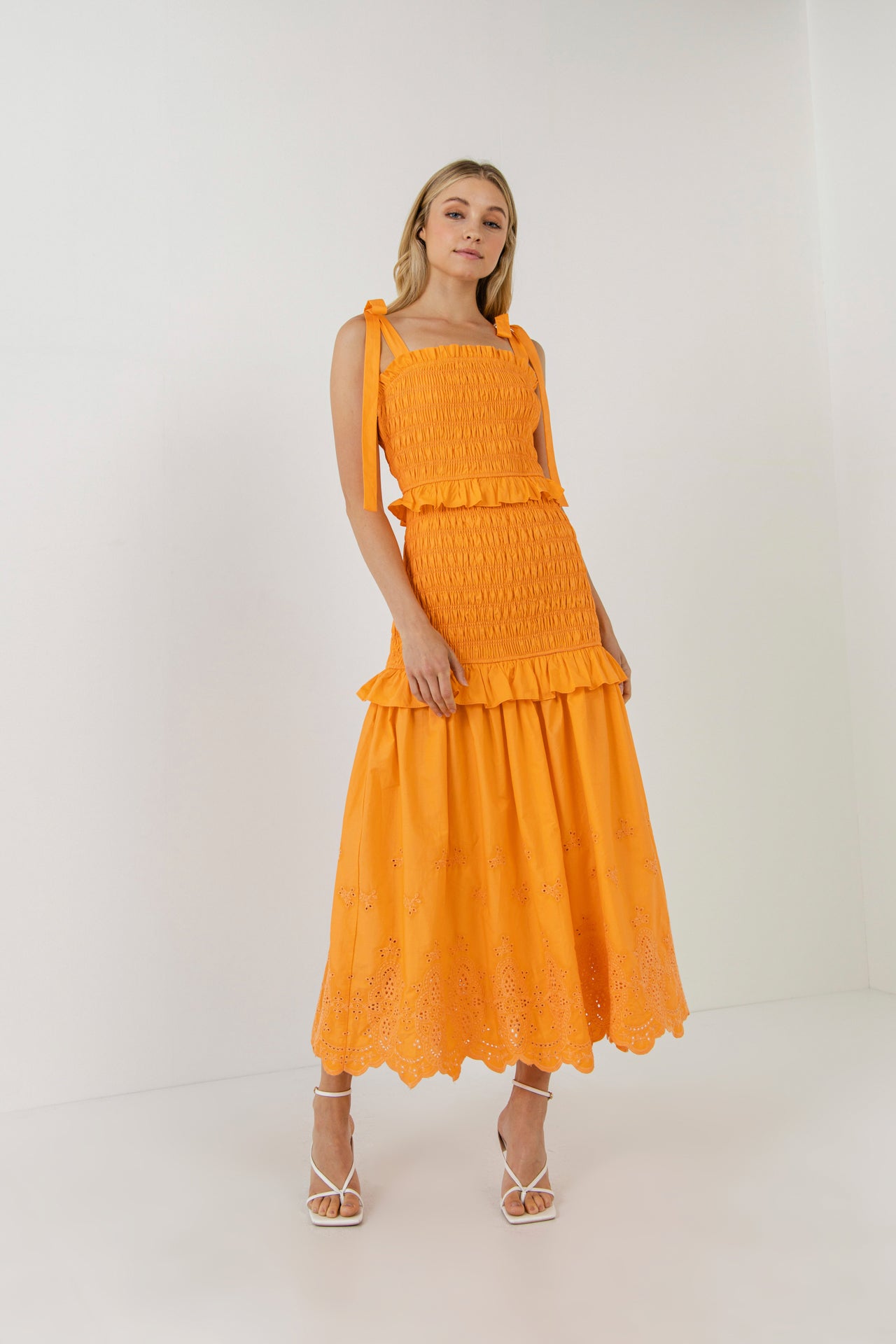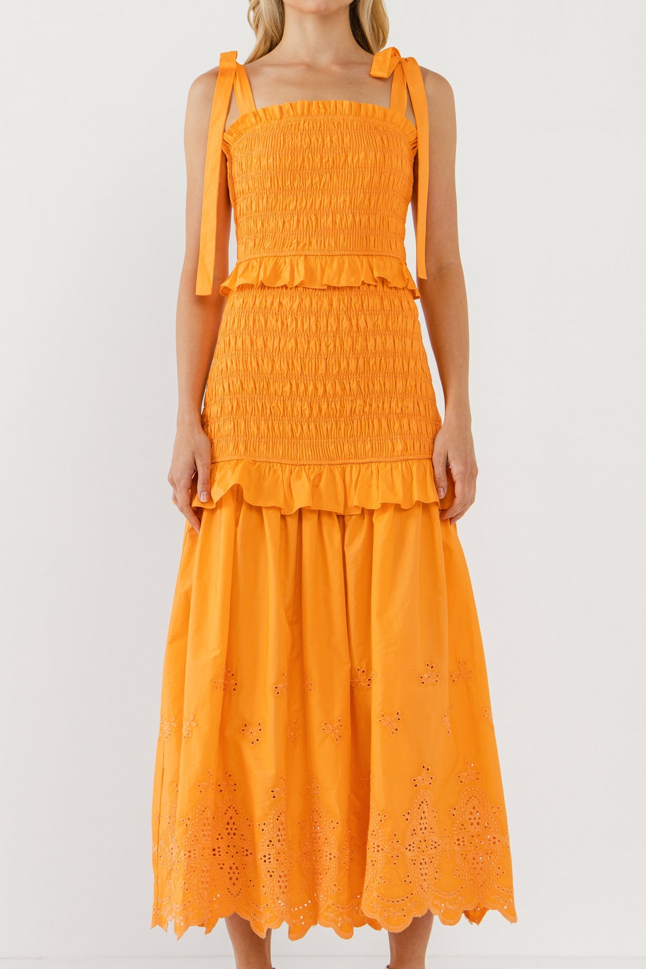 Sunset Eyelet Smocked Maxi