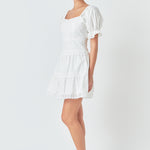 Our Sweetheart Lace Combo Puff Mini is perfect for summer picnics and other events. Made from white cotton, this mini dress has a cottage core aesthetic that will make you feel like you're one with nature.