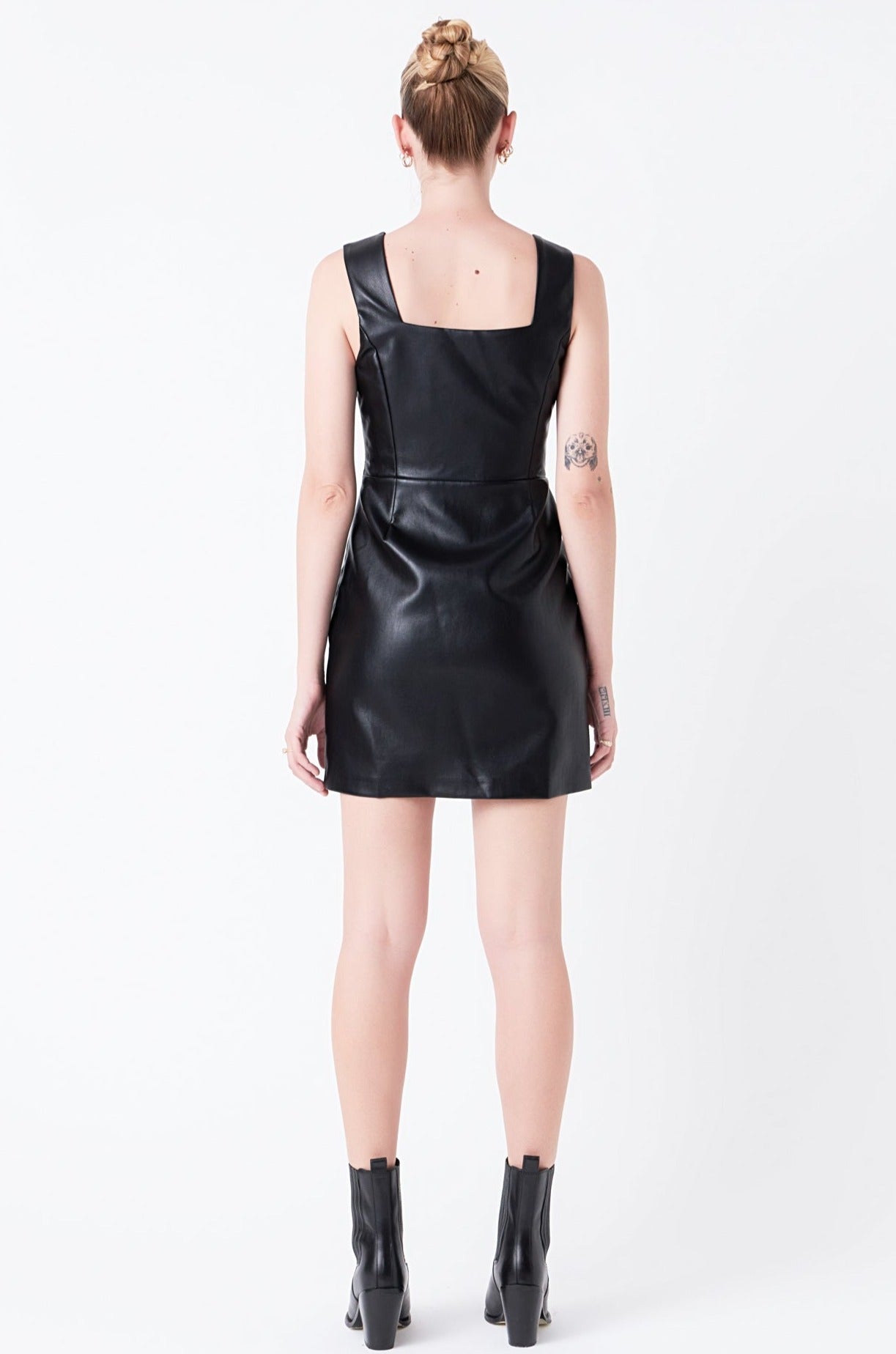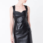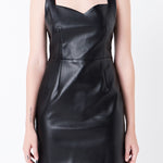 You'll be falling in love with this mini dress. With its sweetheart neckline and bodycon fit, this PU fabric mini is sure to make a lasting impression. Sleek and chic, it's perfect for dressing up or down. With its versatile style, this little black dress is a must-have in any fashionista's wardrobe.