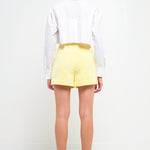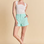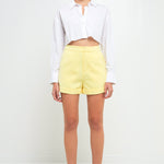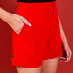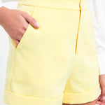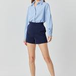 Pair our High-Waisted Tailored Shorts with the matching blazer for a stylish take on the classic suit look. Perfect for wearing to the office or with a pretty blouse while running errands these shorts are lined for your comfort and feature a sleek cuffed hem.