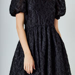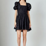 Delicate and dainty. Captivating and charming. The Texture Floral Organza Mini Dress personifies qualities we all aspire to have. With its square neckline, short puff sleeves and mini length, this dress flatters any figure. The real show-stopper, however, is the beautiful floral textured fabric. It's perfect for a summer day or a evening out on the town. Just add your favorite heels and a sparkling necklace and you'll be ready to turn heads.