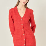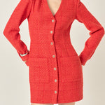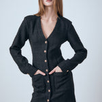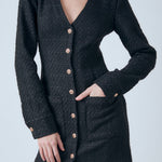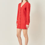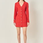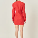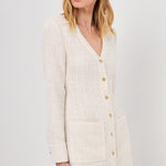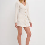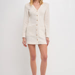 This textured dress is perfect for a day or night out. The button-down detailing gives this mini dress a sophisticated touch. Throw it on with some sandals or heels and you're ready to go. With long sleeves and a v-neckline this dress is perfect for cooler temps. The button closure ensures a perfect fit. You'll love the way you look and feel in this dress.