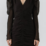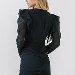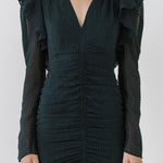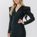This Textured Long Sleeve Ruched Mini Dress is sure to be your new go-to look. The plaid pattern on sheer fabric and ruffle trims at the shoulder hem add the perfect touch to any night-out outfit. Stylish shirring details at the front side will leave you feeling confident and beautiful. And who could forget the back invisible zipper closure for convenient and easy fastening? Get ready to turn heads in this unique dress!