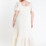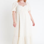 Make a stunning statement in our Textured Maxi Dress! This dress features a textured fabric sweetheart neckline ruched bodice and puffy sleeves with decorative bow ties on arm bands. It's the perfect dress for any special occasion and is sure to make a lasting impression. This Textured Maxi Dress offers a beautiful style that is sure to turn heads. Get yours today and stand out!