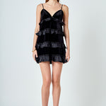 This Tiered Contrast Velvet Mini Dress is a stunning wardrobe addition! With fashionable features like a V neckline sleeveless and spaghetti straps all accented by a velvet tiered skirt this dress is sure to turn heads. Sophisticated and stylish this mini dress is perfect for everyday and special occasions. Add this to your collection today and experience the glamour of a timeless design.