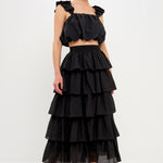 Strut your stuff in this flirty tiered maxi skirt. This flowy skirt will have you feeling like a goddess. With a maxi length and fully lined design, this skirt is perfect for any formal or casual occasion. Whether you're headed to your best friend's wedding or out for a romantic dinner, this skirt is sure to impress. Add it to your wardrobe and look effortlessly chic all year long.