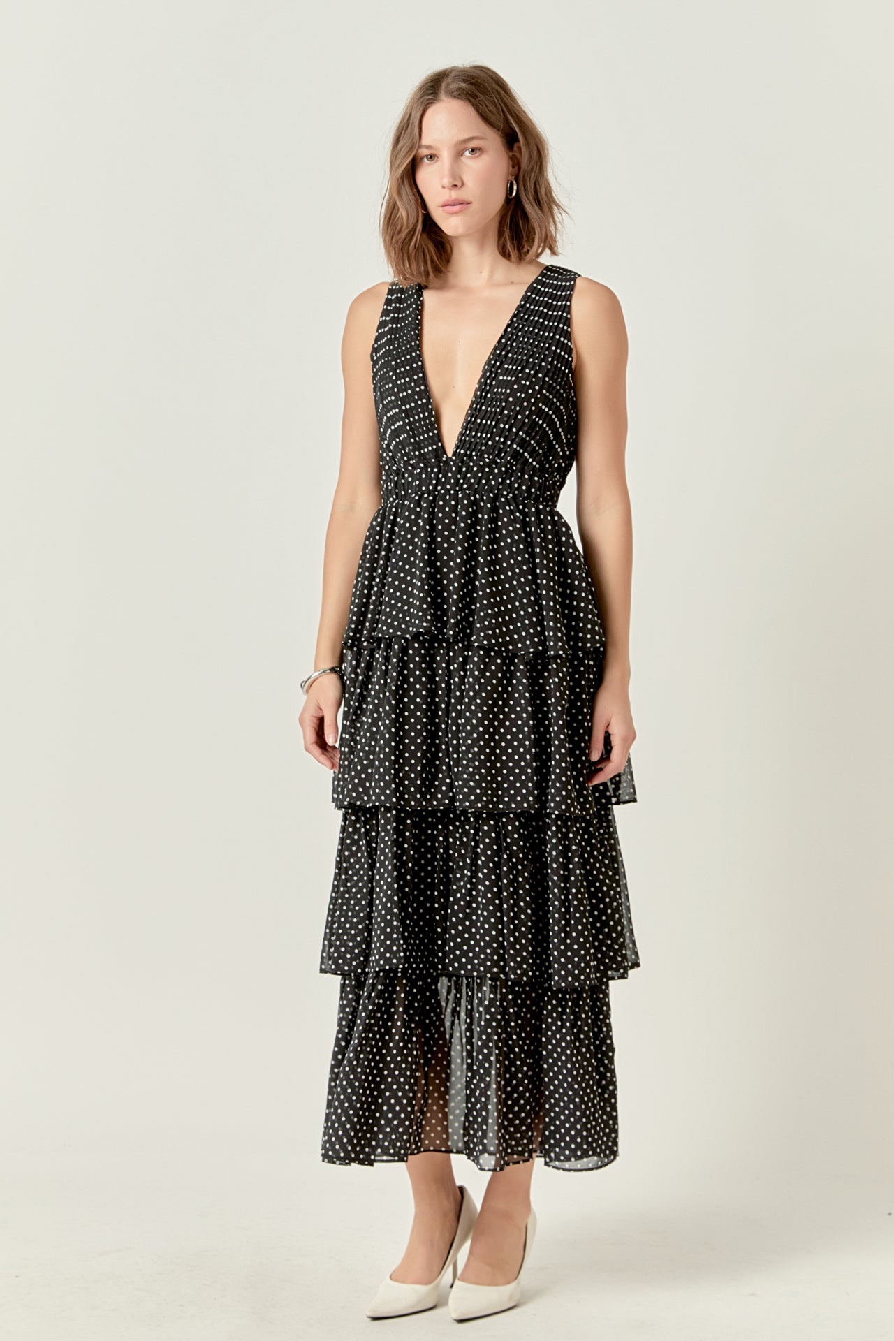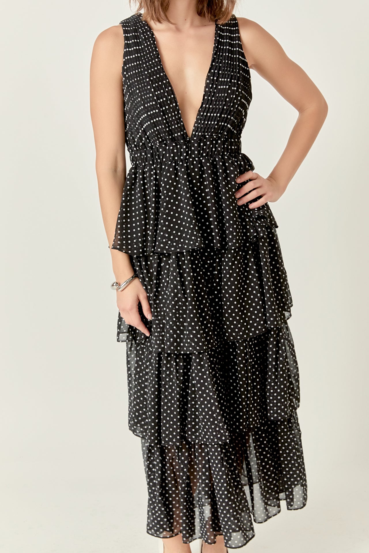 Elevate your style with our Tiered Polka Dot Maxi Dress! Featuring charming polka dots and delicate pleating, this dress effortlessly brings a touch of vintage flair to any occasion. The back spaghetti tie adds a flirty detail while the elastic waistband ensures a comfortable, flattering fit. Perfect for a beach day or brunch with the girls, this dress is a must-have in every fashionista's wardrobe. This dress is a timeless piece that will turn heads. Shop now and channel your inner fashionista!