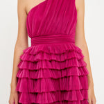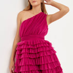 Looking for a show-stopping gown? This Shoulder Tiered Tulle Dress from Endless Rose is guaranteed to turn heads. The beautiful one-shoulder silhouette is paired with a tiered skirt for a look that is both elegant and playful. The perfect choice for a special night out, this dress is sure to make you feel like a princess.