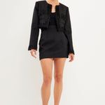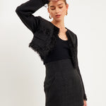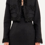 Mediumweight tweed and trim detailing create this cropped jacket. It features front pockets and is fully lined for enjoyable wear.