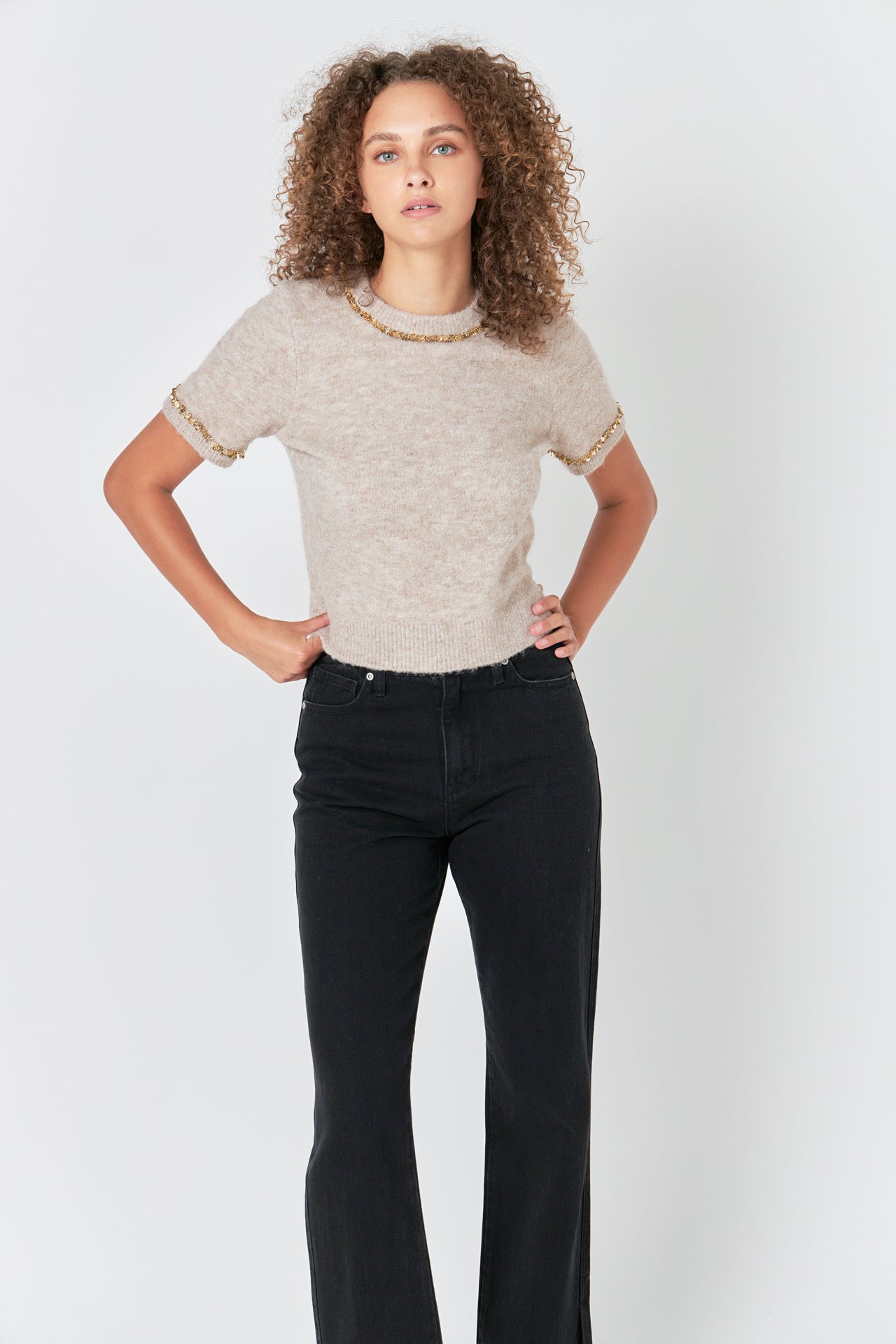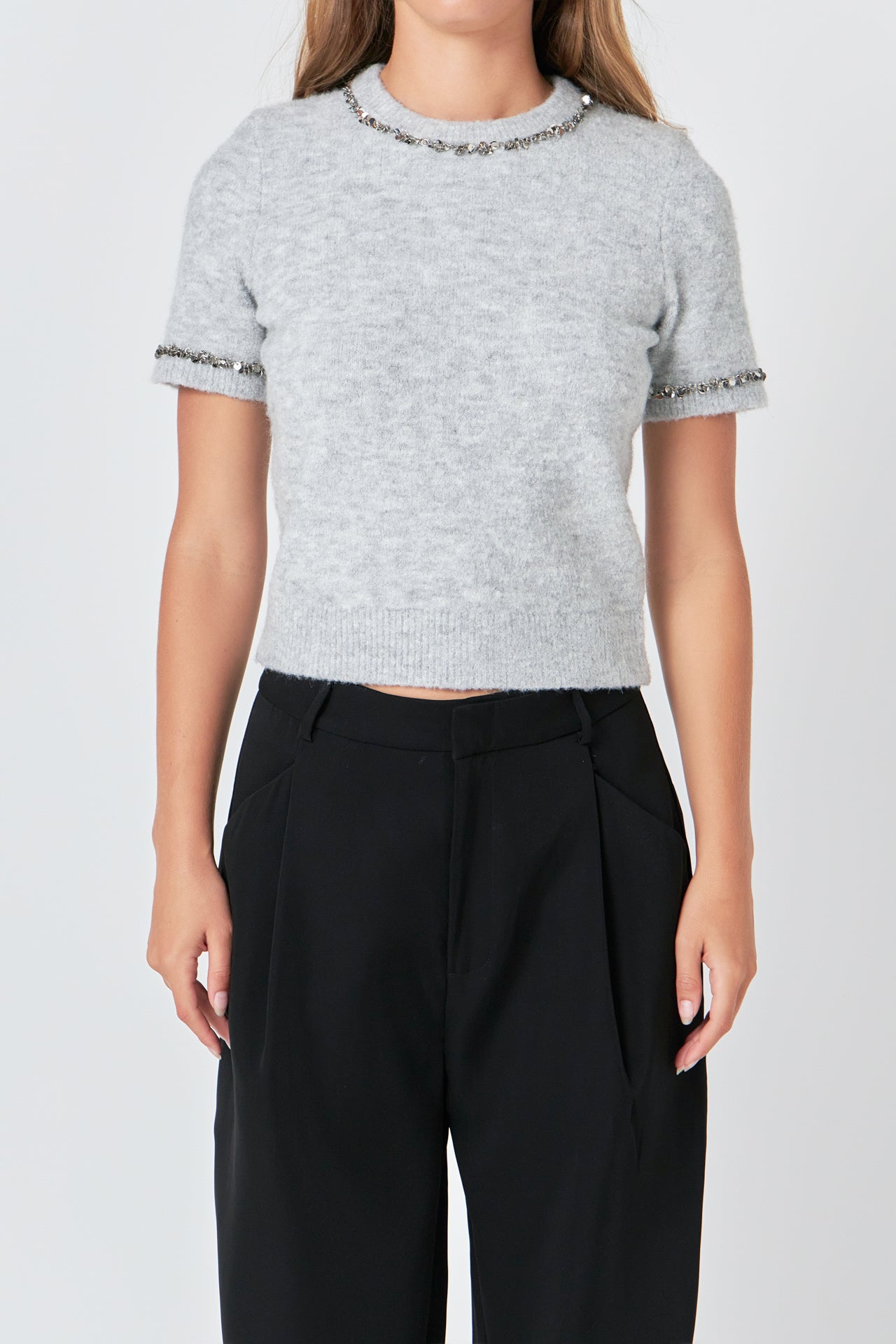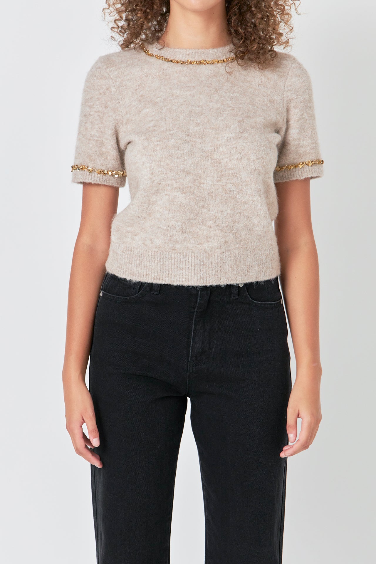 Trimmed Knit Short Sleeve Top