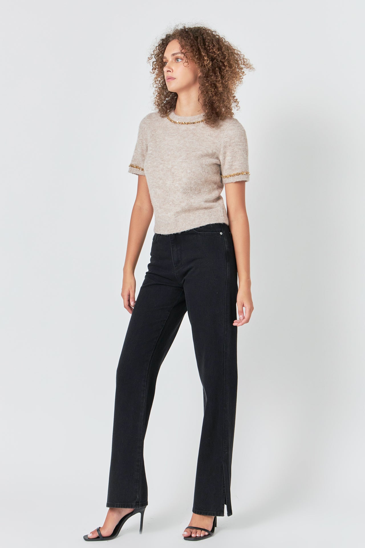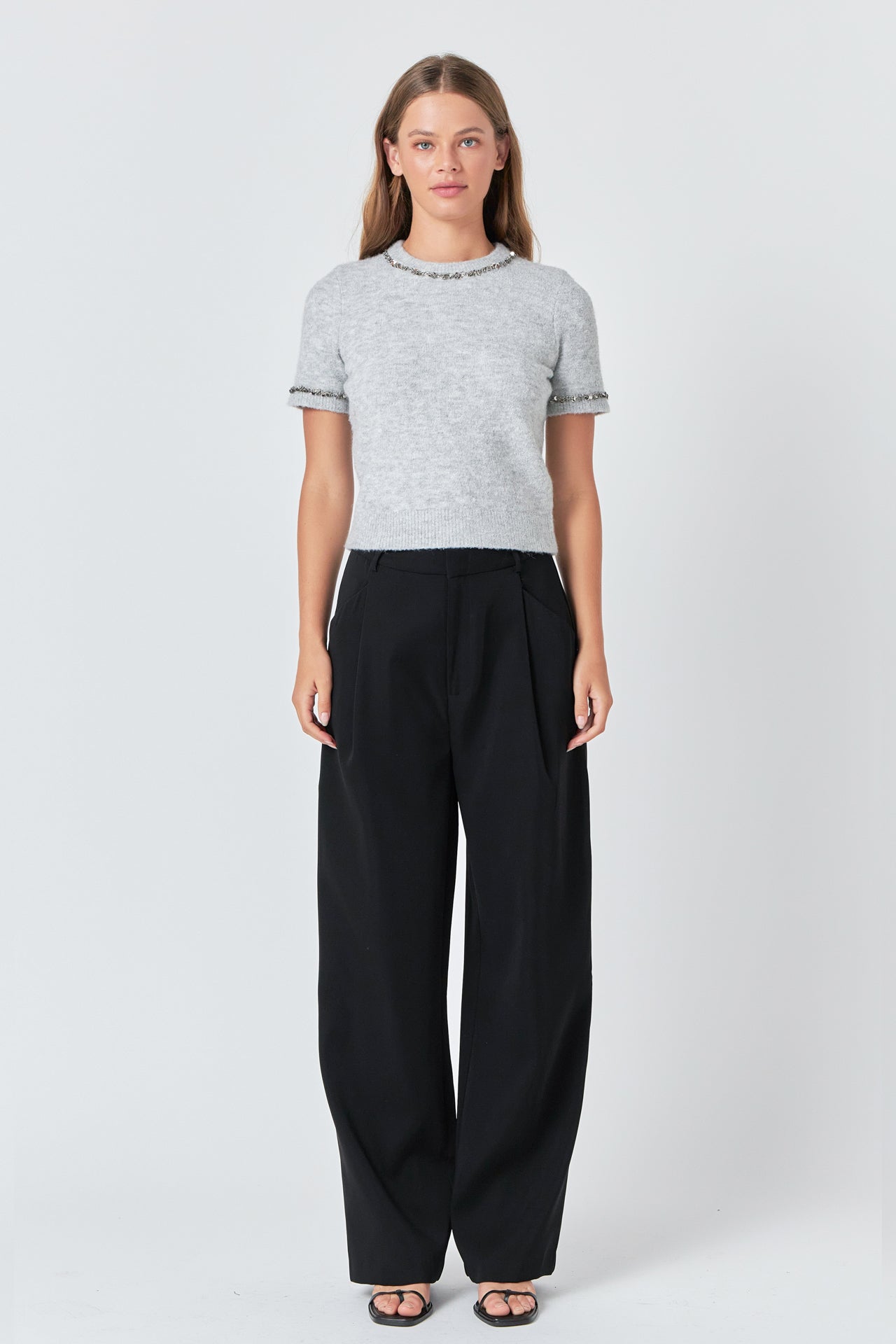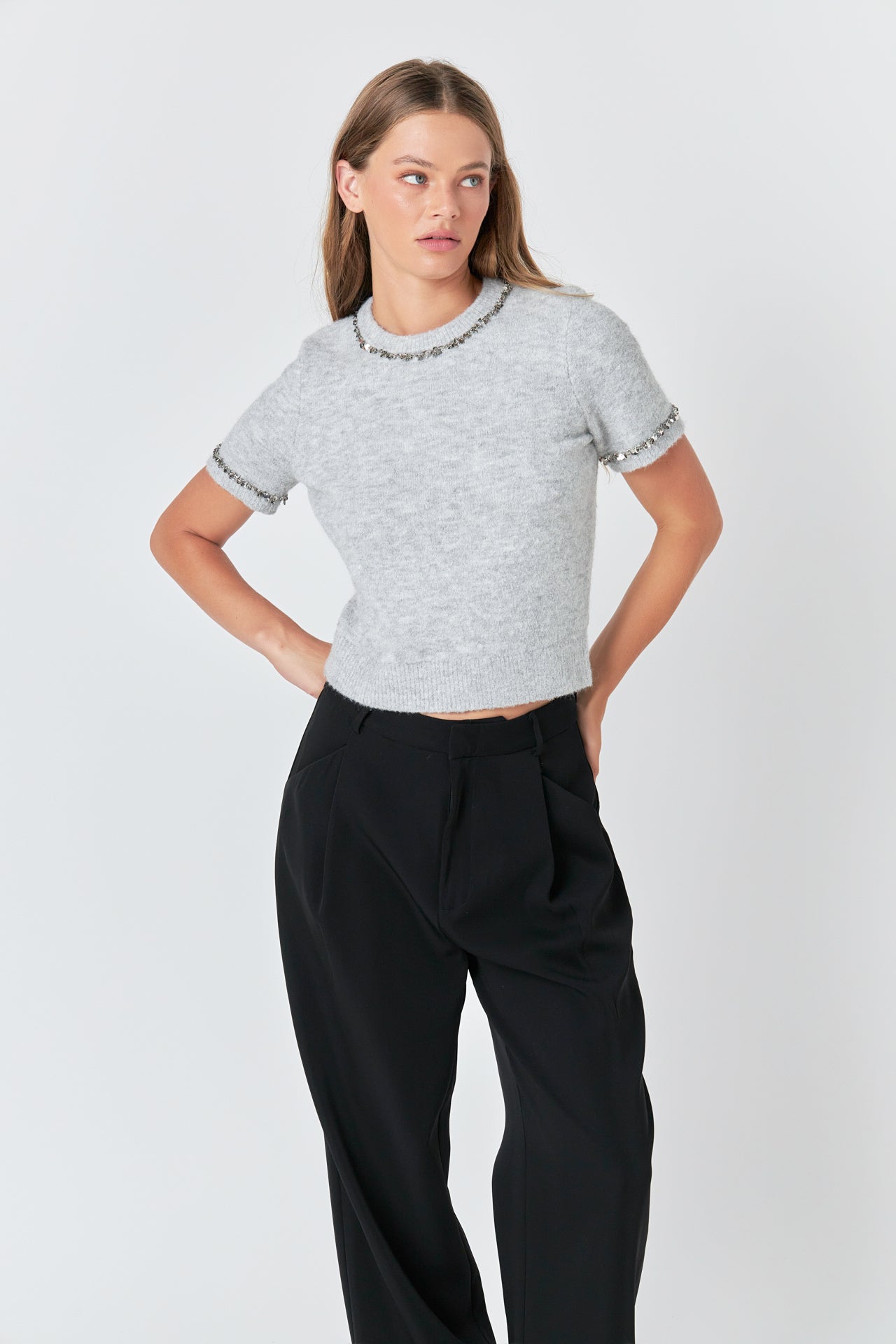 Trimmed Knit Short Sleeve Top