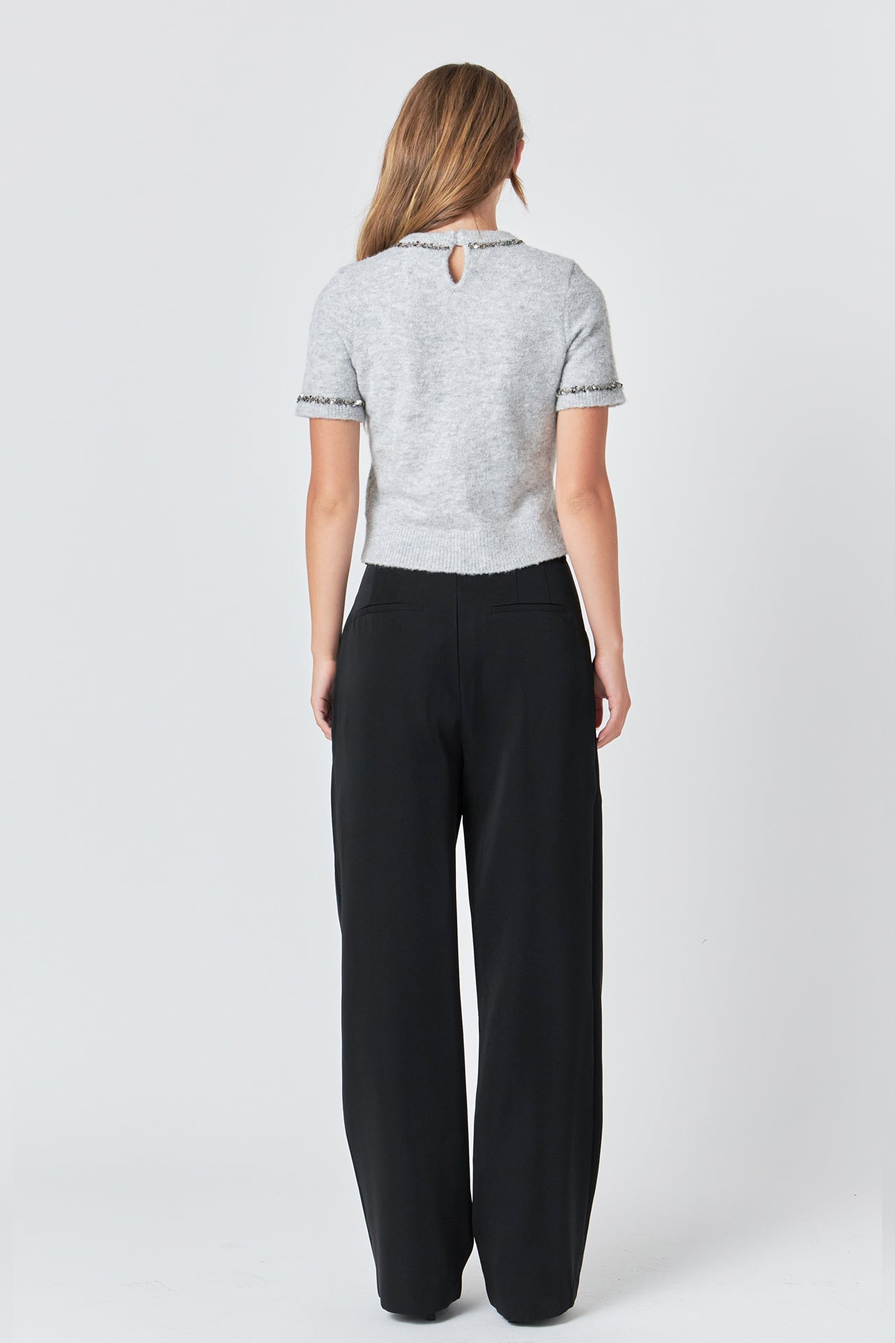 Look fashionable for any occasion with this Trimmed Knit Short Sleeve Top! Featuring a round neckline short sleeves with ribbed ends and a back neck keyhole closure this top is sure to become one of your favorite go-to pieces. Perfectly crafted from high-quality materials it's the ideal choice to complete any attire. Get yours today and make a statement every time you wear it!