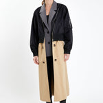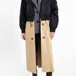 Our Trio Trench Coat is an innovative jacket that brings together the best elements of all your favorite jacket styles - blazer, bomber and trench - in one stylish piece. Constructed from high quality fabric, this piece features a long length and long sleeves, as well as a unique side pocket for your everyday essentials. Make a statement in this modern mash-up and don't be afraid to embrace your style. Perfect for any occasion, the Trio Trench Coat is sure to become your new favorite. Get yours now!