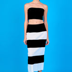 Get ready to turn heads with our must-have Monroe Tube Top and Maxi Skirt Set! The striped design adds a touch of playfulness while the strapless top and fitted skirt gives off an effortlessly chic vibe. Perfect for any occasion, pair it with heels for a night out or sandals for a sunny day. This set will have you looking stylish and feeling confident. Our high-quality fabric ensures maximum comfort and the perfect fit. Don't miss out on this versatile and trendy set. Add it to your wardrobe now!