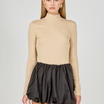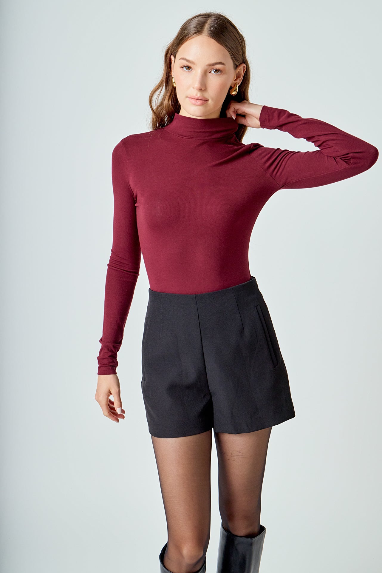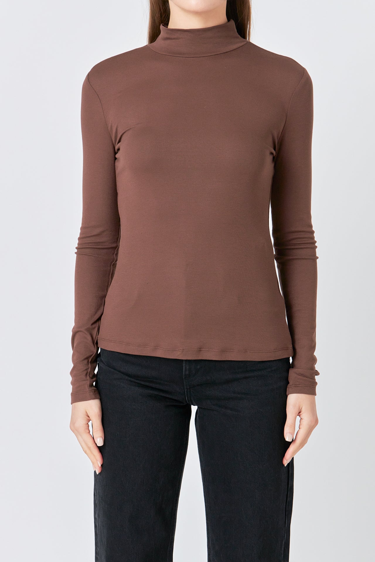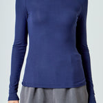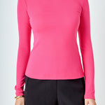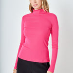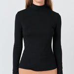 A fitted bodice and long sleeves make this top perfect for chilly weather. The turtleneck provides extra coverage and warmth. The stretchy knit fabric is comfortable and moves with you. This top is sure to become a cold-weather favorite.