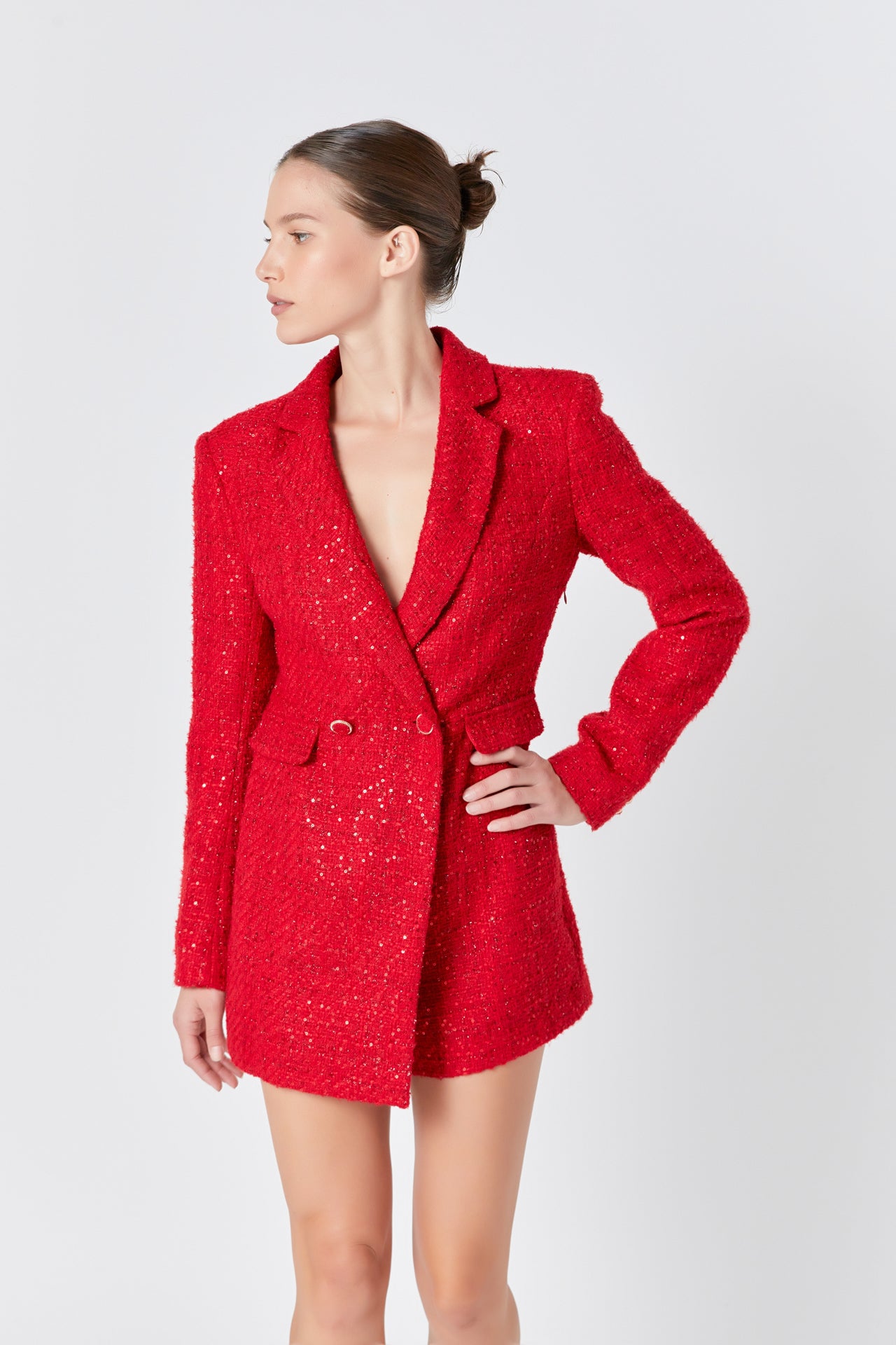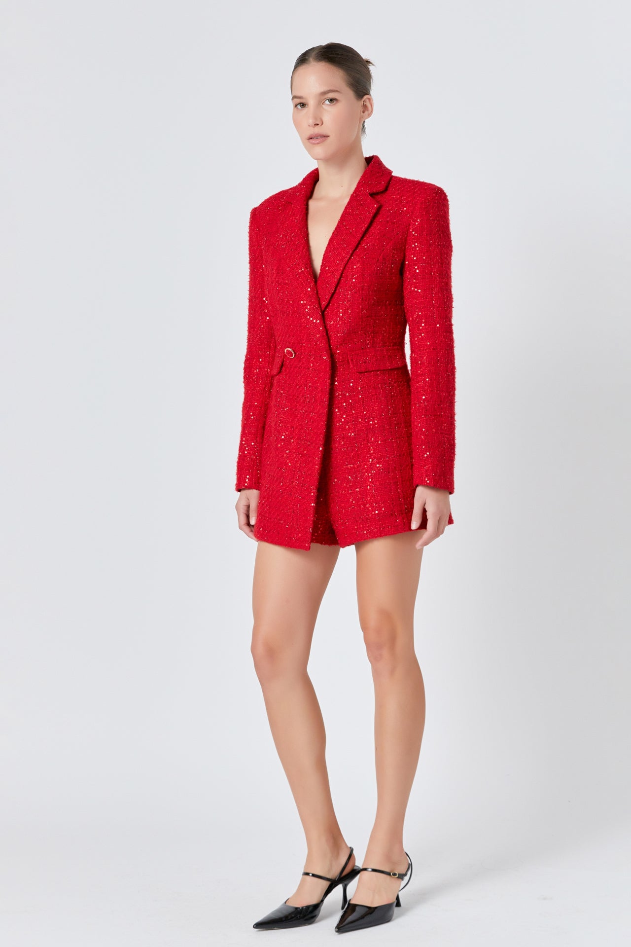 Premium Sequin Tweed Blazer Romper