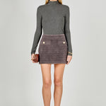 Add a touch of sophistication to your wardrobe with our Tweed Boucle Skirt. This mini length skirt is a must-have for any fashion-forward individual. The front pocket flap adds a chic twist to this classic piece, while the front buttons and side zipper add convenience and style. Crafted from a high-quality tweed boucle fabric, this skirt is not only fashionable but also comfortable. Pair it with your favorite blouse and heels for a timeless look. Perfect for both work and play, this versatile skirt is a must-have for any fashionista. Shop now and elevate your style game!