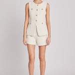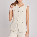 Elevate your wardrobe with our Lauren Tweed Buttoned Long Split Top. Made from high-quality tweed fabric, this top exudes sophistication and elegance. The round neckline and sleeveless design add a modern touch, while the front button-up closure allows for easy on and off. Perfect for work or a night out, this top offers endless styling options. Stand out from the crowd with its unique split detail, making it a must-have in every fashionista's closet. Shop now and make a statement with our Lauren Tweed Buttoned Long Split Top.