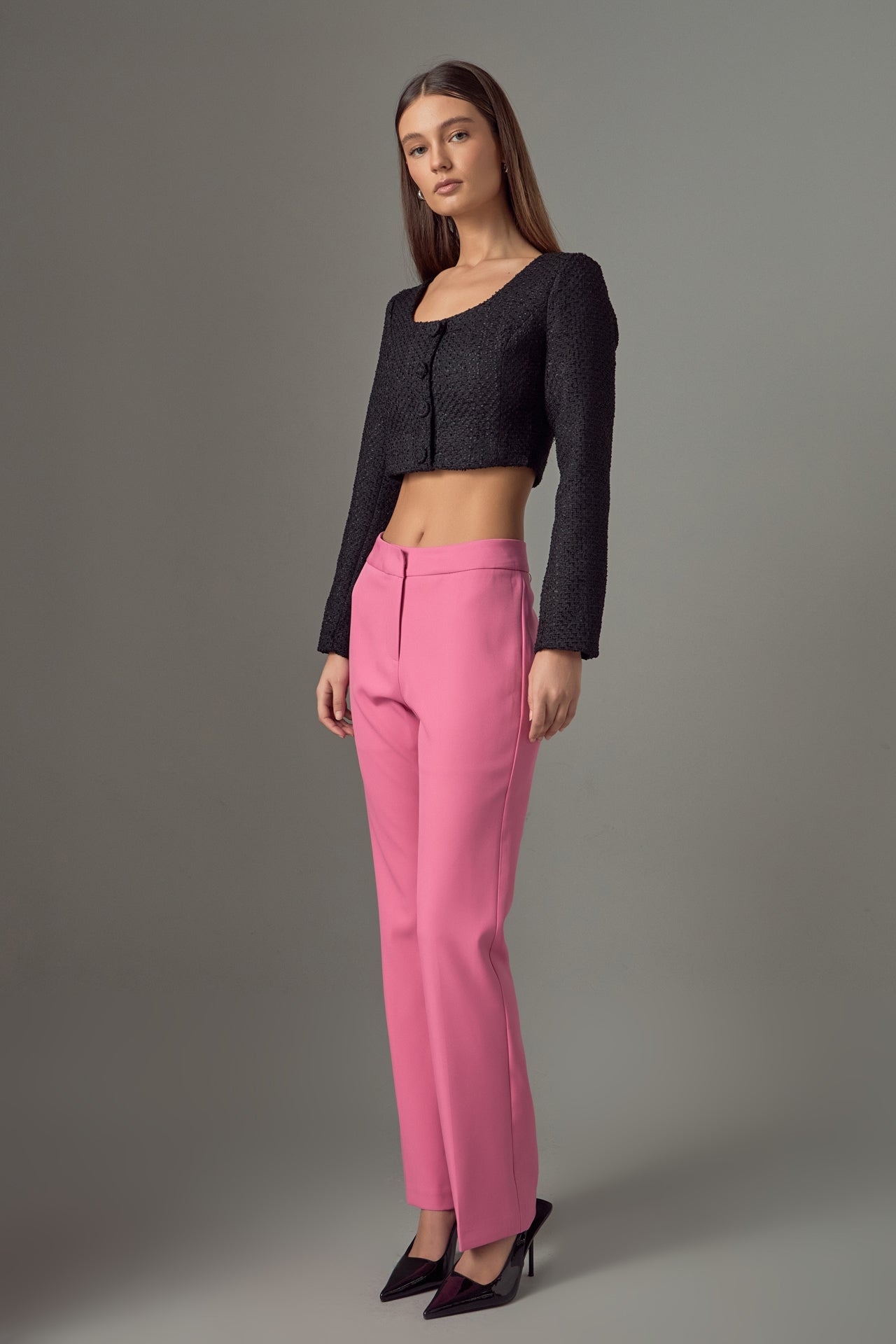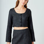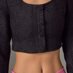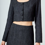 Elevate your wardrobe with our must-have Tweed Buttoned Top. Its timeless tweed fabric exudes elegance and sophistication, perfect for any occasion. A flattering scoop neck and shoulder pads effortlessly enhance your silhouette, while the button detail adds a touch of refinement. Versatile and stylish, this top is a wardrobe essential. Perfect for both casual and formal looks, it's a versatile piece that you can dress up or down. Upgrade your style game and stand out with our Tweed Buttoned Top. Shop now for the ultimate chic look.