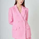 Elevate your wardrobe with our Emily Tweed Cinched Double Breasted Blazer. This timeless ensemble blends classic tailoring with contemporary style, offering a polished, refined look for the modern woman. The structured silhouette flatters your figure, while the sharp lines and subtle feminine details add a touch of elegance. Crafted from high-quality fabrics, this blazer ensures all-day comfort and a sophisticated appearance, whether you're heading to an important business meeting, a lunch with friends, or a city event. Versatile and chic, this Blazer is the perfect balance of professionalism and style. Make a statement wherever you go with our Emily Tweed Cinched Double Breasted Blazer!