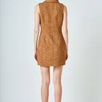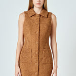 Introducing our stunning Tweed Collared Mini Dress, the perfect blend of sophistication and style. Made from high-quality tweed fabric, this dress boasts a luxurious texture and subtle checked pattern. The classic collar and front buttons add a touch of elegance, while the front pocket adds a functional detail. Perfect for any occasion, this dress is a versatile addition to any wardrobe. Upgrade your style game with our Tweed Collared Mini Dress, a must-have for fashion-forward women.